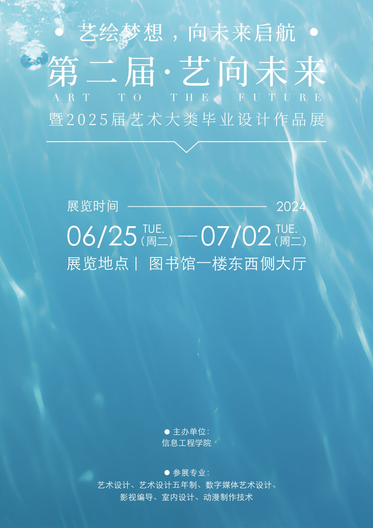 (新闻中心讯 信息工程学院颜洁雅供稿 校党委宣传部报道)6月25日上午,信息工程学院第二届“艺向未来”暨2025届艺术大类毕业设计展于学校图书馆一楼大厅正式开幕。学校校长庄伟廉,党委书记郑艳,副校长唐学学,副校...
