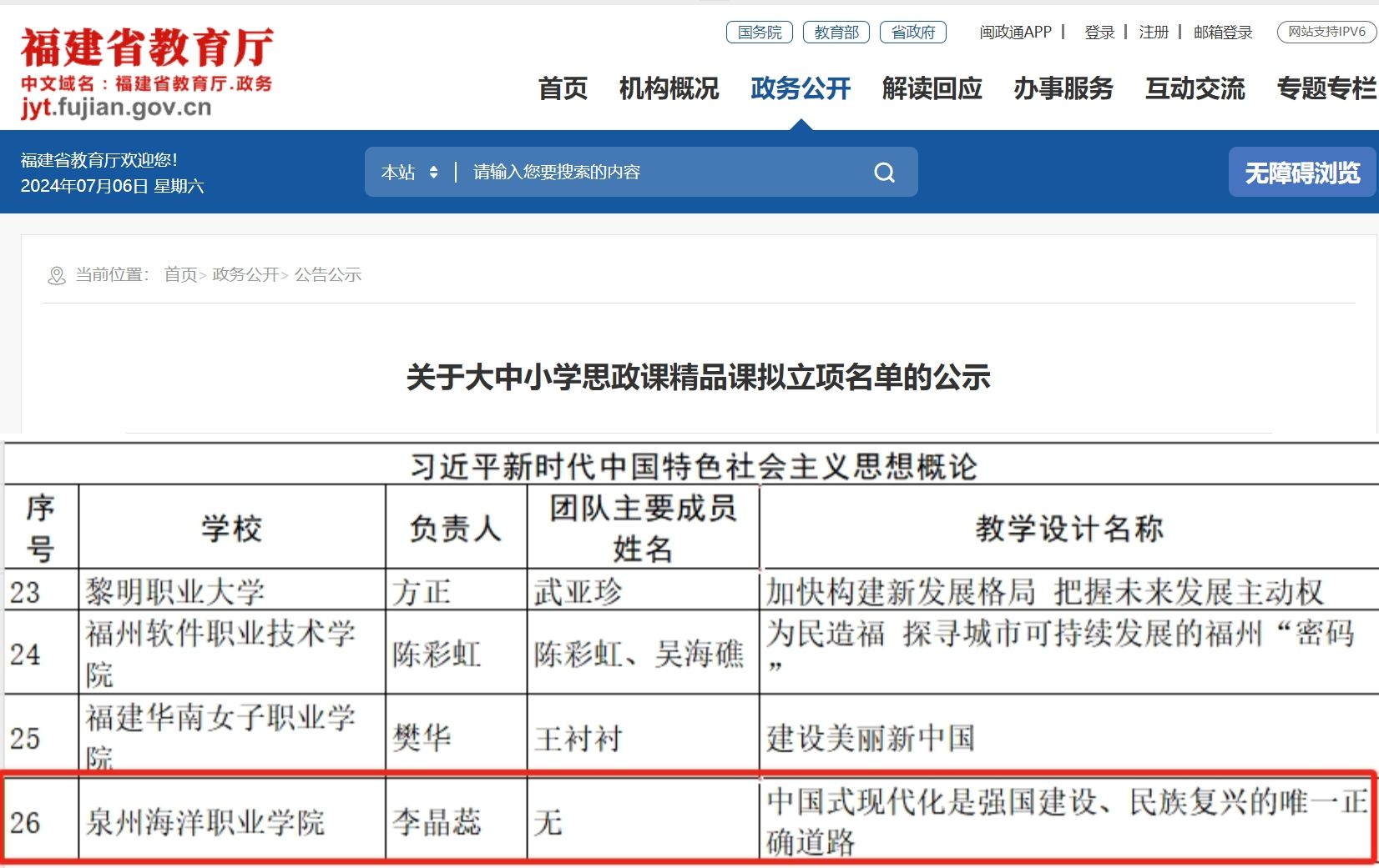 近日,省教育厅发布《关于大中小学思政课精品课拟立项名单的公示》的通知。经过严格的申报推荐和专家评审,马克思主义学院李晶蕊老师主讲的《中国式现代化是强国建设、民族复兴的唯一正确道路》课程,荣获全省思政课教师“大练兵”交流展示活动的思政课精品课立项。本次思政课教师“大练兵”交流展示活动,旨在深入学习和宣传贯彻党的二十大精神,全面落实习近平总书记在中央政治局第五次集体学习时的重要讲话精神和学校思想政治理论课教师座谈会上的重要讲话精神,...