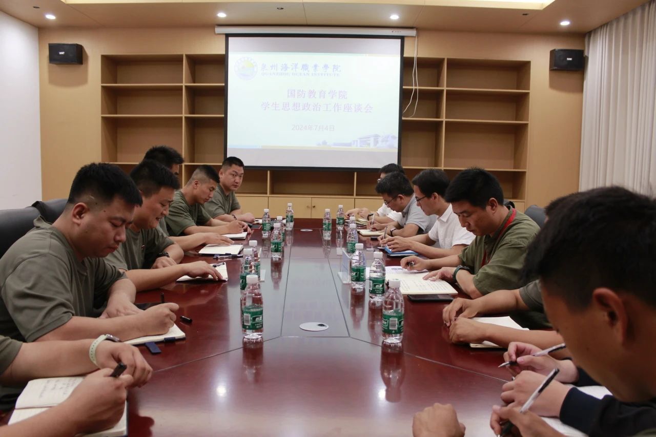 (新闻中心讯 国防教育学院黄莹莹供稿 校党委宣传部报道)7月4日,国防教育学院召开学生思想政治教育工作座谈会。校党委副书记、副校长李明灿,党委学生工作部部长张君,党委学生工作部副部长、团委书记屈先锋,国防教育学院院长曾繁升、党支部书记苏良城、党支部副书记贺充及学院全体教职工参加。贺充围绕着学院的基本情况、党团工作、学生思政工作及安全工作等方面作了汇报。曾繁升着重指出学院学生思想政治教育工作当前存在的问题及下一步努力的方向。...