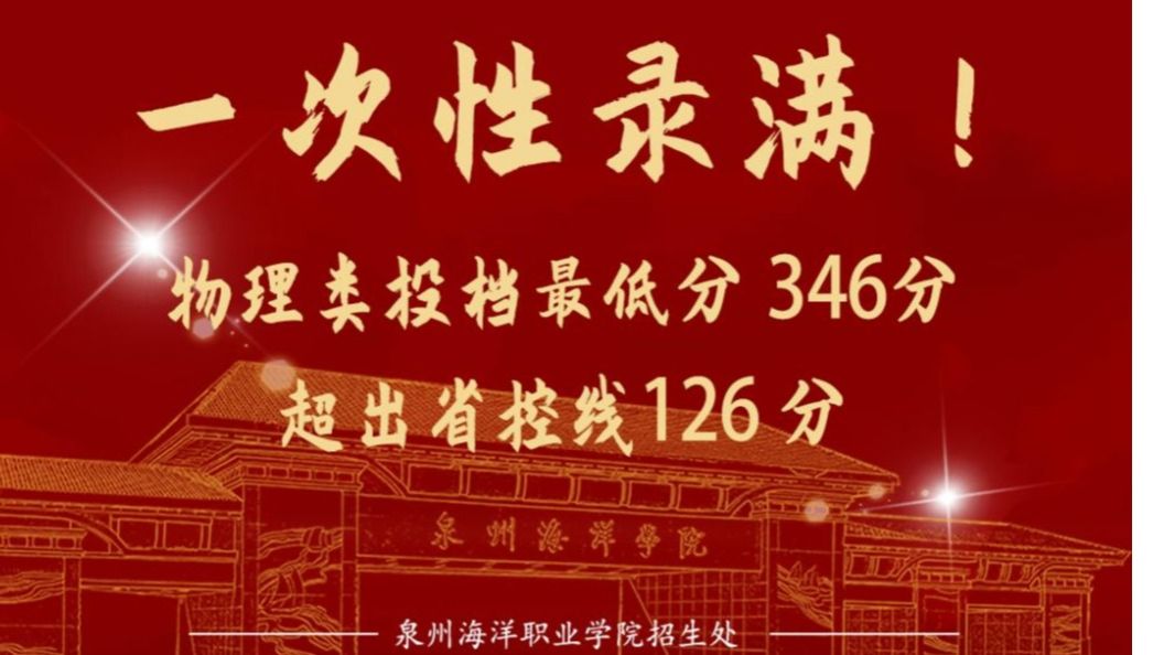 (新闻中心讯 招生处许妍供稿 校党委宣传部报道)2024年8月10日晚,福建省普通高考专科普通批投档结果出炉。今年我校的录取分数线、生源质量均有不同幅度的提高,分类别、分专业录取成绩呈现“百花齐放”的喜人形势。一、物理类、体育类一次性满档,连续两年计划完成率100%。今年我校面向福建省39个专科专业招生,共计划招生1277人。其中,普通类物理组、体育类计划均实现连续2年一次性满档,计划完成率稳定,考生报考热情高涨。二、...