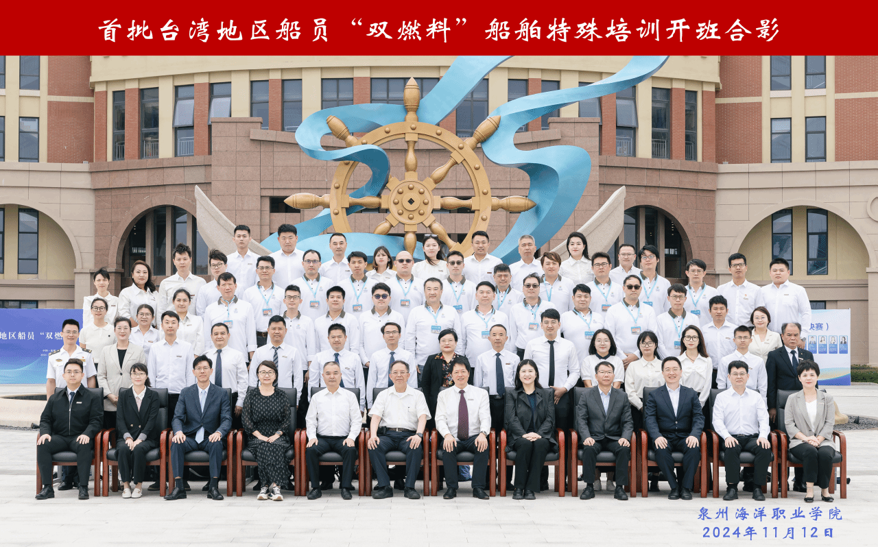 (新闻中心讯 党委宣传部报道)11月12日,首批台湾地区船员“双燃料”船舶特殊培训在泉州海洋职业学院正式开班,20名台湾地区船员成为首批培训学员。此举不仅标志着“台湾地区船员“双燃料”船舶特殊培训”新领域正式启动,也开创了泉州辖区开展对台船员培训先河,成为全国探索海峡两岸融合发展新路、建设两岸融合发展示范区的一个生动写照。交通运输部海事局船员管理处副处长周巍,福建海事局二级巡视员王瑞琅,台湾中华海员总工会理事长章烈忠,...