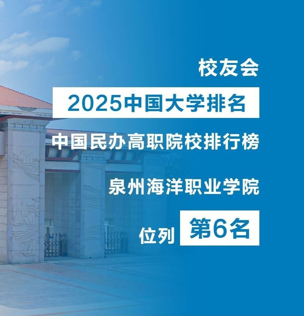 (新闻中心讯 党委宣传部报道)2025年1月6日,全国第三方大学评价研究机构艾瑞深校友会网(Cuaa.net)正式发布校友会2025中国大学排名,泉州海洋职业学院凭借高质量办学成果跻身中国一流高职院校行列,位列校友会2025中国民办高职院校第6名,居福建省同类院校榜首。与此同时,在中国高职院校排名(I类)中,我校位列第28名。校友会中国大学排名首发于2003年,已连续发布23份榜单,成为具有广泛社会影响力、公信力、参考价值与创新力的中国大学排名领先品牌。...