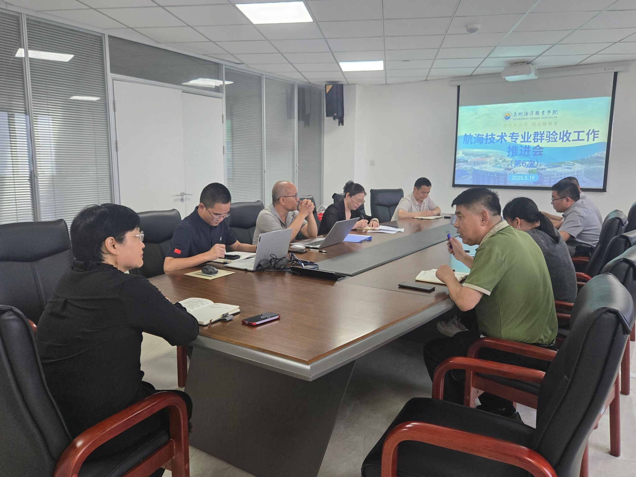 (新闻中心讯 教务处供稿 党委宣传部报道)5月19日下午,省级高水平航海技术专业群验收工作第六次推进会在图书馆西侧813会议室召开。会议聚焦验收工作关键环节,全面梳理任务进展,明确后续攻坚方向,旨在全力冲刺验收优秀等级目标。常务副校长唐学学、董事长助理王鹏飞出席会议,相关职能部门及二级学院负责人参会。会上,航海交通学院院长董远志、海洋工程学院院长陈景锋分别就专业群建设任务推进情况作专题汇报;教务处副处长廖贵强针对专业群建设任务佐证材料进行专项反馈,...