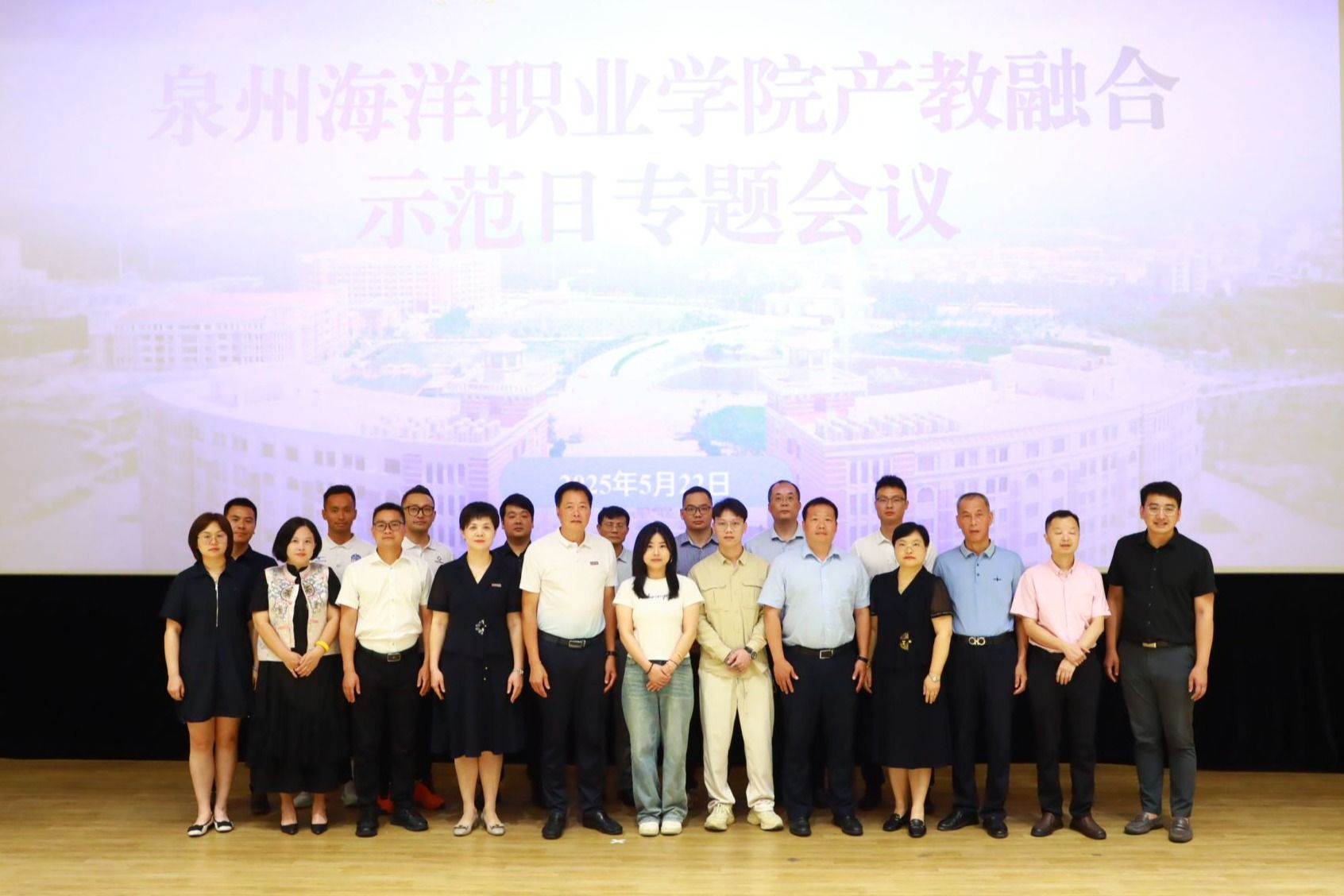 (新闻中心讯 对外合作处供稿 党委宣传部报道)5月22日,学校举行产教融合示范日专题会议暨校企合作签约授牌仪式。活动以“产教协同创新 赋能职教发展”为主题,通过签约授牌、交流互动,为职业教育与产业发展深度融合注入新动能。校长庄伟廉、党委书记郑艳、常务副校长唐学学、副校长陈永鑫,以及教务处、对外合作处、法务处等部门代表和各二级学院负责人共同出席会议。福建泉州青工足球俱乐部有限公司、舒华体育股份有限公司等17家企业代表应邀参会,...