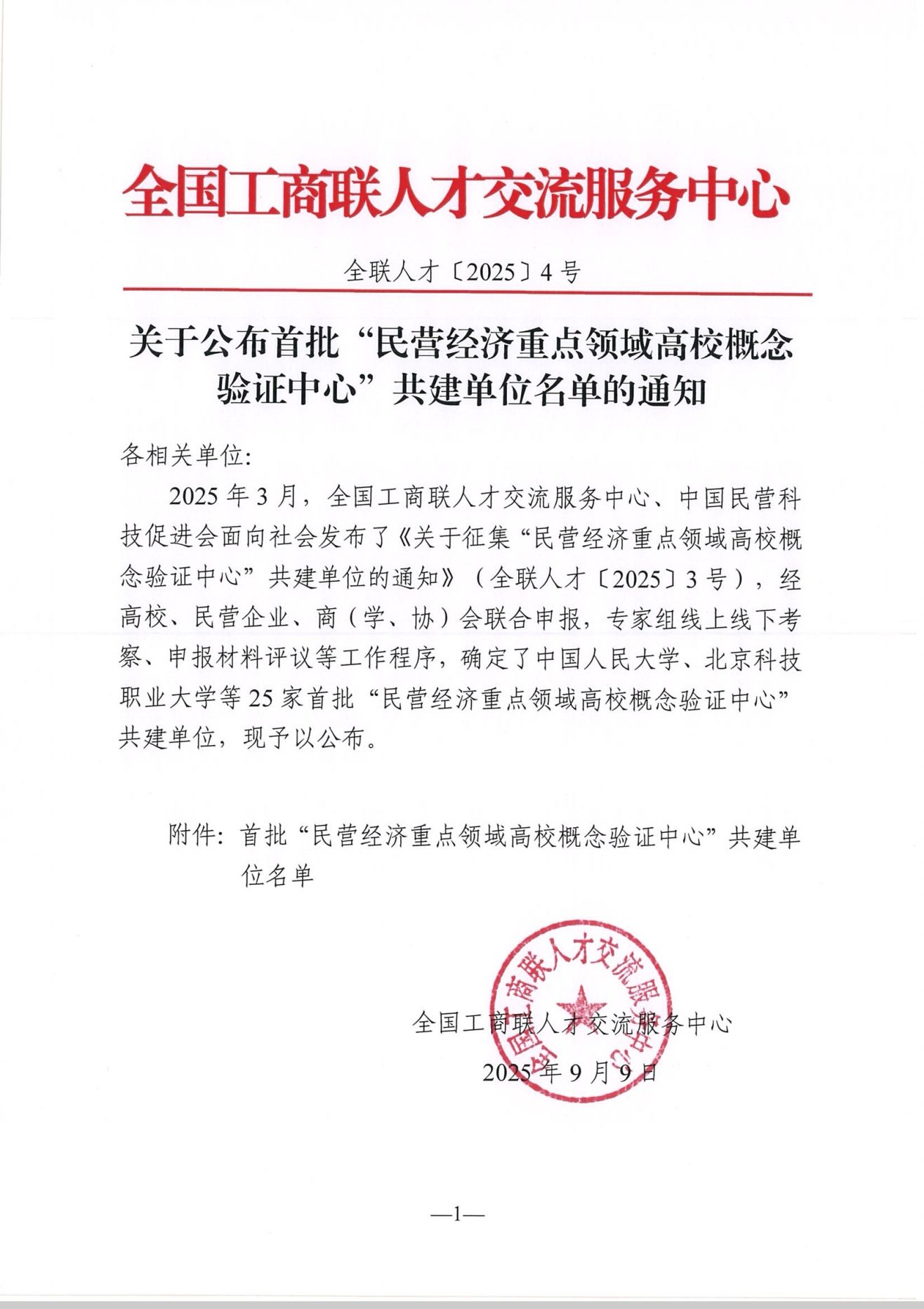 (新闻中心讯 党委宣传部报道)9月9日,全国工商联人才交流服务中心公布首批“民营经济重点领域高校概念验证中心”共建单位名单,全国共有25家高校入选,泉州海洋职业学院成功跻身其中,共建领域为“海洋智能装备与绿色航运技术”。该共建计划由全国工商联人才中心与中国民营科技促进会联合推出,旨在通过“政行企校”四方协同的创新机制,破解科技成果转化“最初一公里”的难题,进一步助推民营经济高质量发展。泉州作为民营经济强市,...