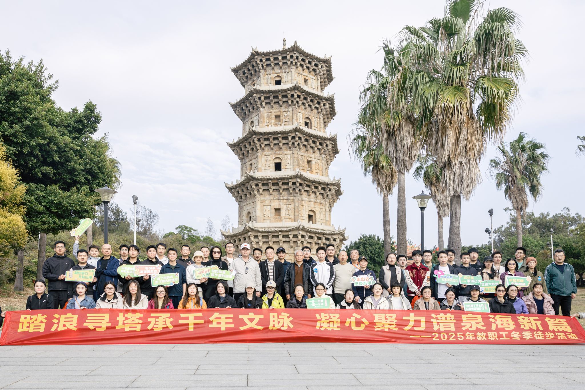 (新闻中心讯 校工会供稿 党委宣传部报道)为丰富教职工文化生活,增强团队凝聚力,引导教职工在行走中亲近自然、感悟历史,12月12日下午,校工会组织开展“踏浪寻塔承千年文脉 凝心聚力谱泉海新篇”教职工冬季徒步六胜塔活动。近百名教职工热情参与,共同开启一场集健康行走、文化体验与团队协作为一体的活力之旅。活动伊始,校工会主席、副主席分别作动员讲话,阐述了活动意义,强调了安全事项,并鼓励大家在徒步过程中互帮互助、...