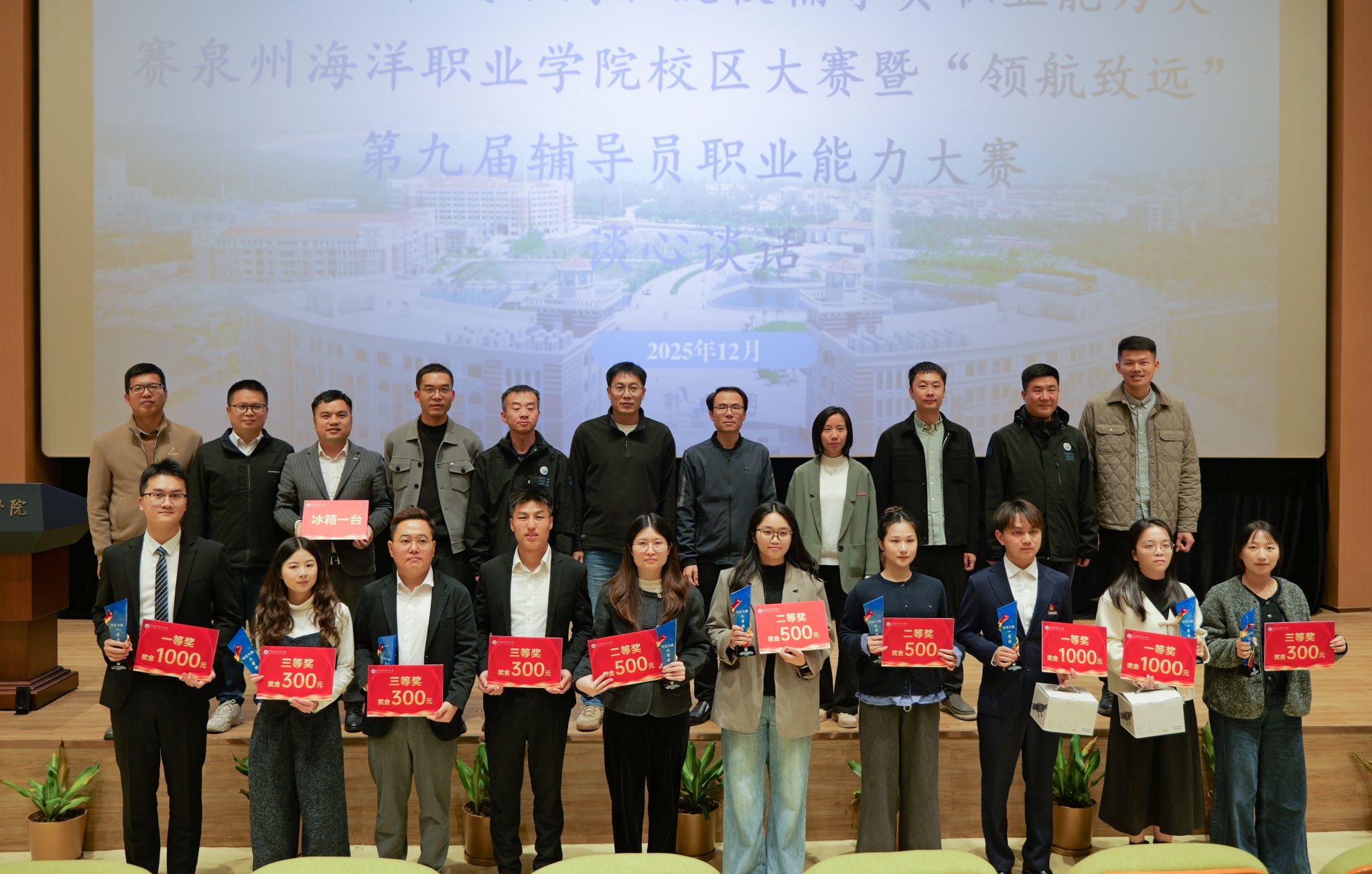 (新闻中心讯 对外合作处供稿 党委宣传部报道)为深化学生职业生涯教育,引导学生树立正确就业观念、提升职业规划能力,12月17日,第三届全国大学生职业规划大赛泉州海洋职业学院校级决赛顺利举行。本次比赛由三创学院、健康休闲学院联合主办。自启动以来,大赛受到全校学生的广泛关注,累计报名人数近4500人,充分展现了我校学子积极参与职业规划的热情。赛事评委团由泉州市烟草专卖局、福建鸣扬机电、上海威康健身管理公司等企业专家,...