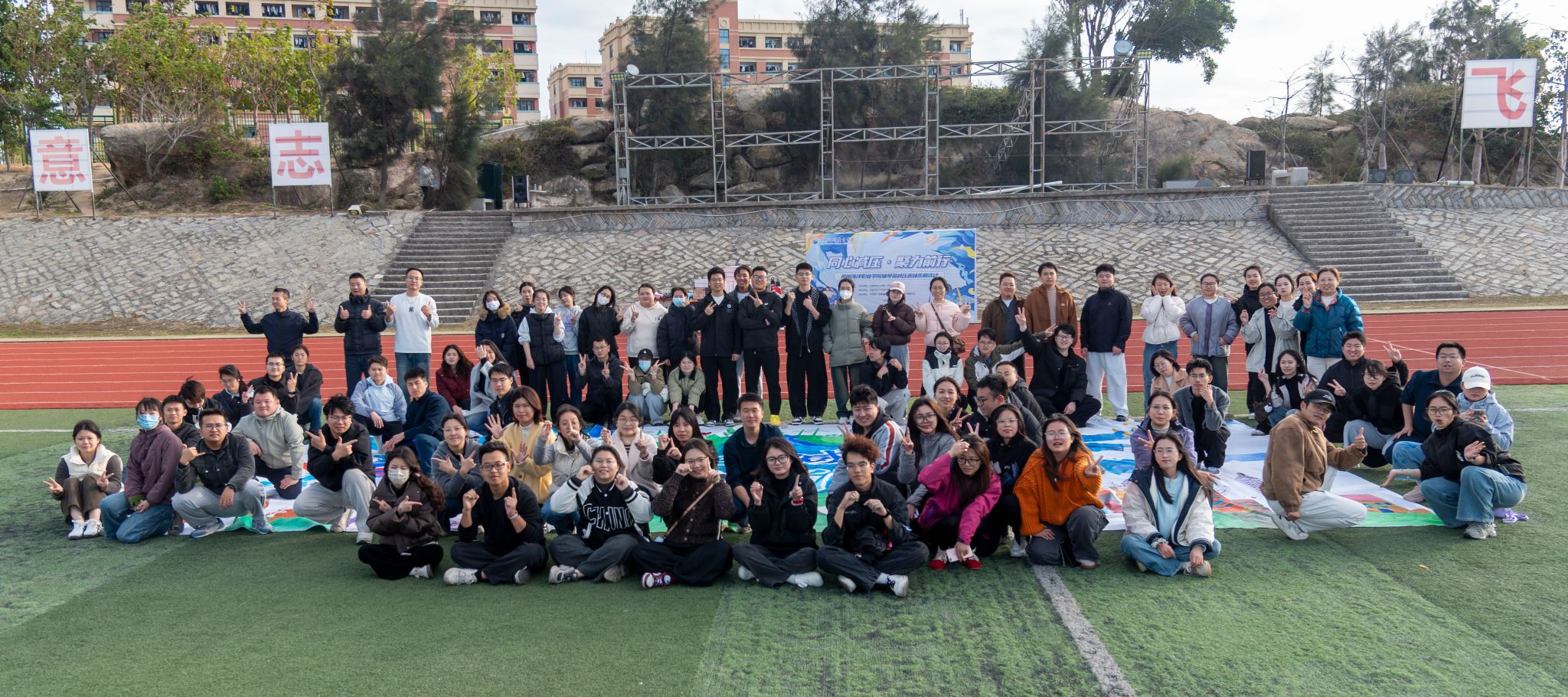 (新闻中心讯 党委学生工作部心理发展指导中心供稿 党委宣传部报道)12月22日下午,学校第一运动场变身活力减压站——由党委学生工作部心理发展指导中心组织的“同心减压·聚力前行”辅导员团体素质拓展活动在这里欢乐举办!学校全体辅导员热情投入,一起释放压力、畅快互动、凝聚共识,共同开启一段充满笑声与协作的午后时光。分区齐体验,同频共感受活动围绕 “心理—体验—联结” 主线,分为解压区、挑战区、协作区三大板块,融合表达性艺术、...