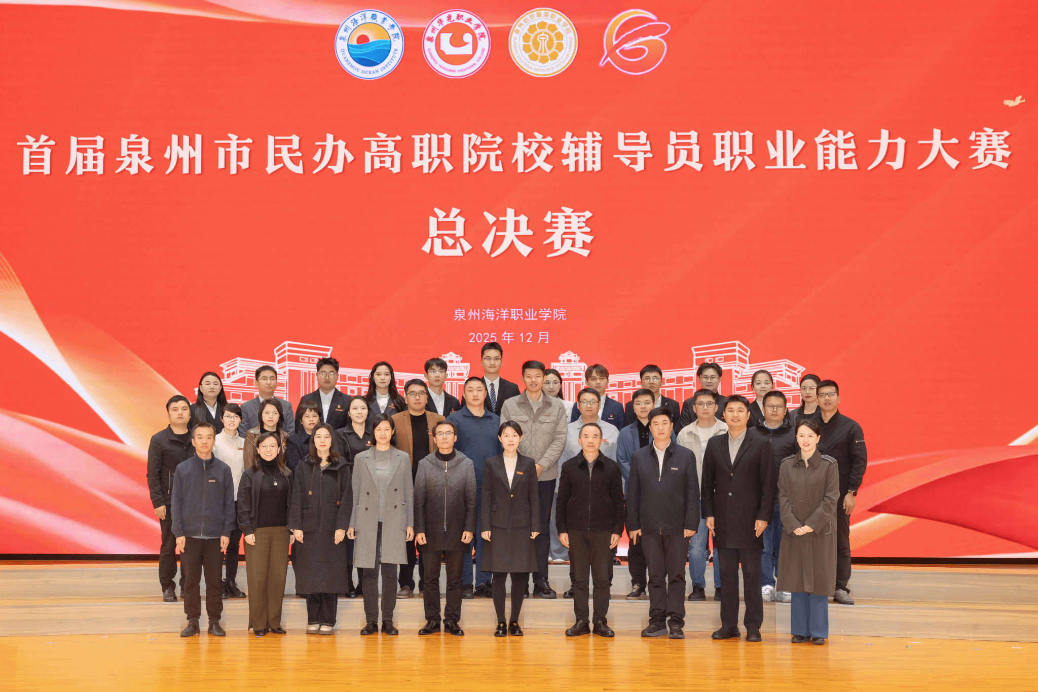(新闻中心讯 党委学工部供稿 党委宣传部报道)12月19日下午,由泉州海洋职业学院、泉州华光职业学院、泉州纺织服装职业学院、泉州工程职业技术学院联合举办的2025年泉州市辅导员职业能力校际交流赛在我校国际学术交流中心上演巅峰对决。泉州华光职业学院副校长陈雄华,我校领导庄伟廉、黄真真、刘锦辉、钱学东、李明灿、陈东水,各校学生处及相关二级学院负责人出席活动。泉州华光职业学院、泉州纺织服装职业学院、泉州工程职业技术学院、...