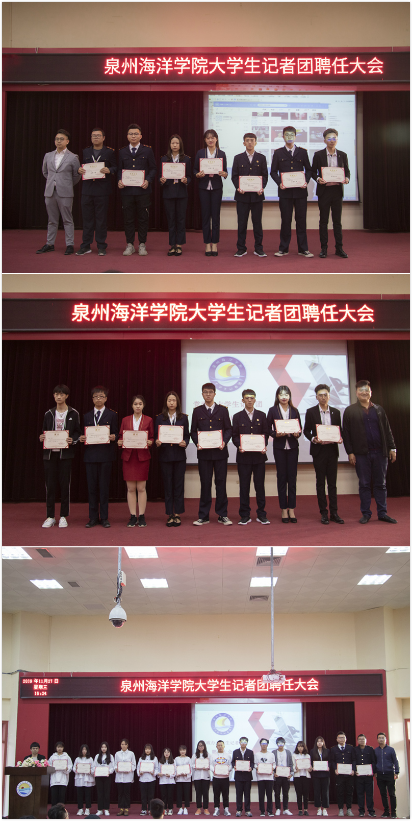 新闻中心讯(记者团供稿 党政办编辑)11月27日下午16:00,泉州海洋职业学院大学生记者团聘任大会在2204报告厅召开。校长助理蔡永鸿老师、学工部苏良城部长以及唐鸿茂、陈嘉琪、郑天明、郑珠红、陈欣欣等老师应邀出席...