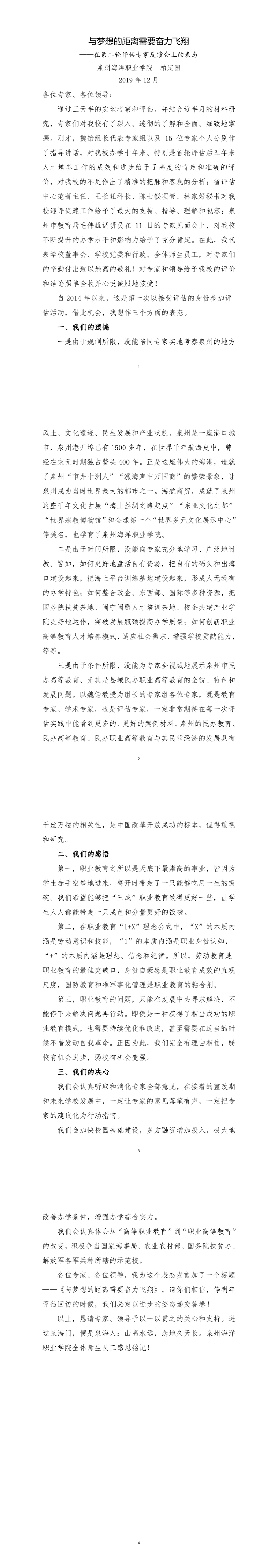 新闻中心讯(党政办报道)12月19日下午,泉州经贸职业技术学院党委书记周文心在该校党务工作部相关负责人陪同下,专程来我校看望慰问在我校挂职的泉州经贸职院干部梁松刚同志,并与蔡天真董事长、柏定国校长、李明灿...
