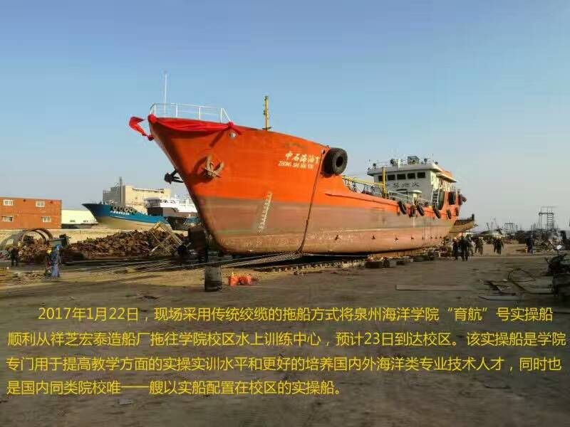 2017年1月22日,我院购置的油轮实操船“育航号”从石狮宏泰船厂出阁,向学院迈进!现场采用传统绞缆的拖船方式从船厂途经石狮大道运行至学院水上训练基地,40多位船厂工人从早上8时许持续工作到下午14时许,固定小船...