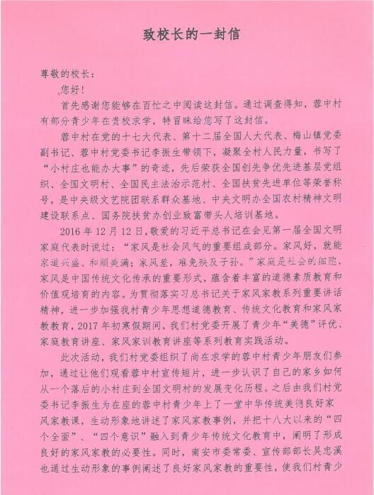 (党政办 李明灿 编辑)近日,全国文明村、全国民主法治示范村、全国扶贫先进单位——泉州南安市蓉中村致信学院林华东院长,向院长介绍该村在2017年寒假期间开展的青少年“美德”评优、家庭教育讲座、家风家训教育讲...