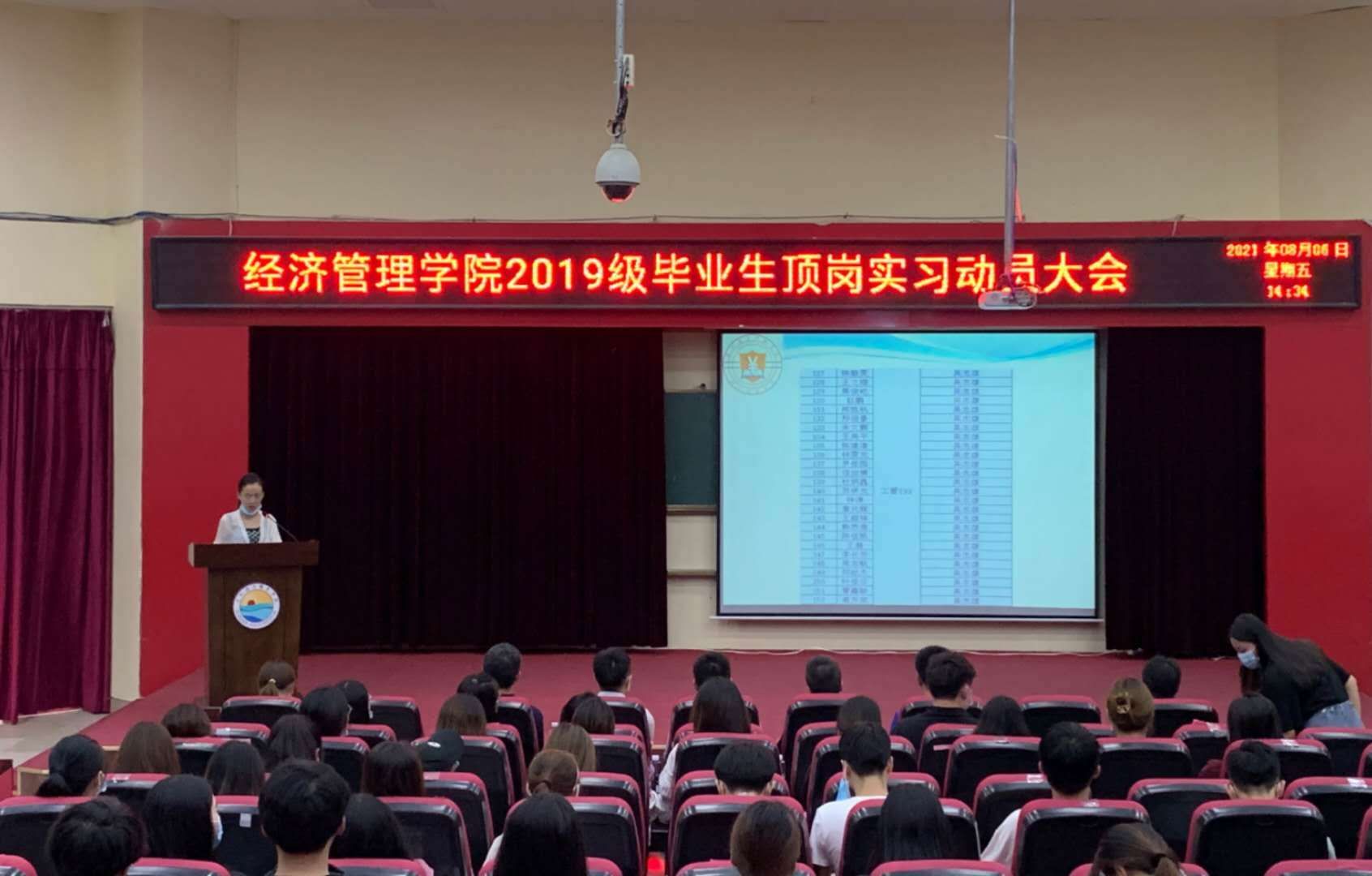 新闻中心讯(经济管理学院徐雪婷供稿 党委宣传部报道)8月6日,经济管理学院于2204报告厅召开2019级学生顶岗实习动员大会。副校长兼经济管理学院院长杨雄教授、多维创业创始人陈奇波先生及学院领导、全体专任教师、辅...