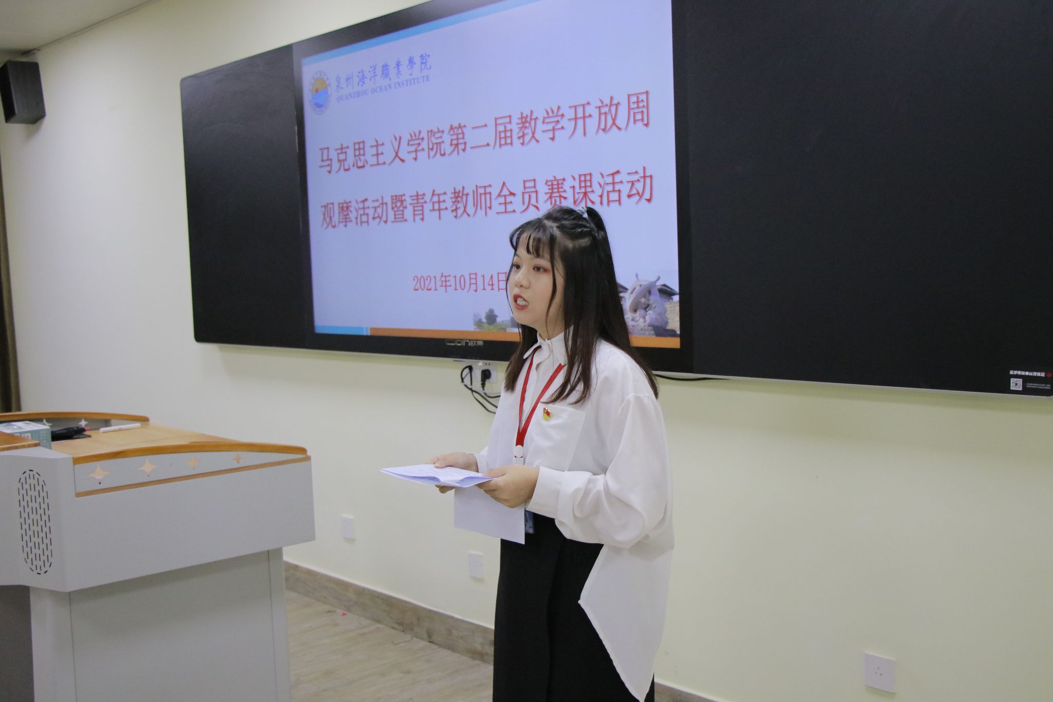 新闻中心讯(马克思主义学院 陈建清供稿 党委宣传部报道)为进一步推进思政课教育教学改革,提高教师教学能力和水平,2021年10月14日下午,马克思主义学院在行政楼智慧教室成功举办第二届教学开放周教学观摩活动暨青...