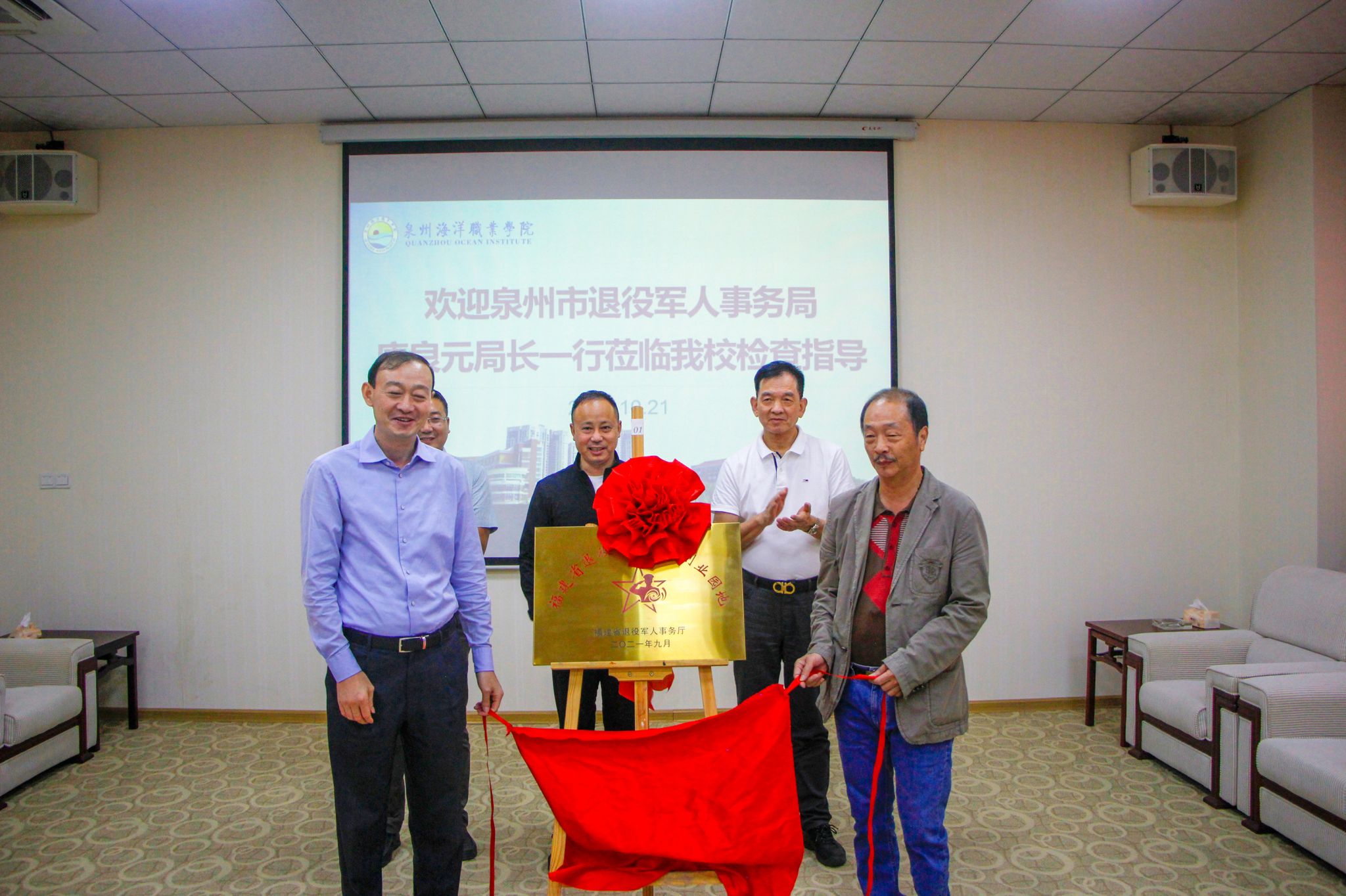 新闻中心讯(党委宣传部报道)2021年10月21日,“福建省退役军人就业创业园地”授牌仪式在我校举行。泉州市退役军人事务局局长唐良元、石狮市退役军人事务局局长李少宗,我校董事长蔡天真、校长朱国辉、副校长刘锦辉...