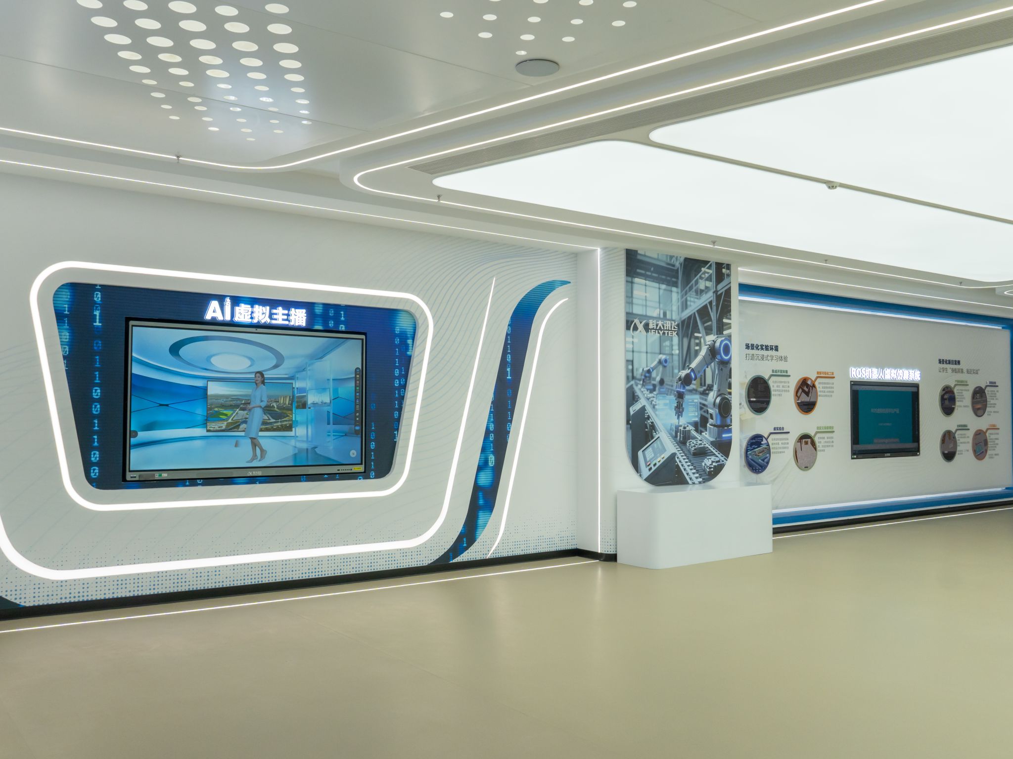 以人工智能产业学院为载体,依托科大讯飞在智能语音、自然语言处理、星火认知大模型等方面的领先优势,以及成熟的AI人才发展能力平台与丰富的产教融合实践经验,推动海洋类与信息技术类专业深度融合,重构课程与实训体系。结合人形机器人、智能机械臂、无人机等高端装备,打造港口智能巡检、海洋环境监测、船舶设备检测等实战场景,构建“教、学、训、用”一体化的沉浸式、项目化育人新生态。科大讯飞深度导入前沿技术与产业视角,在课程共建、师资培训、平台对接、认证体系等方面全方位赋能,推动专业内涵建设与教学改革。项目致力于培养“懂海洋、会智能、强实践”的复合型技能人才,全力助推学校打造全国“AI+海洋”职业教育示范标杆与国家职教信息化标杆,为海洋产业智能化升级注入强劲动能。