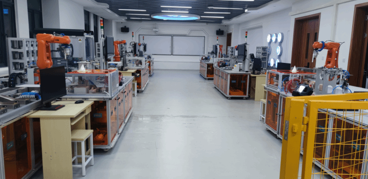 专业拥有一流的实践教学设备、包括工业机器人实训室、电工电子实训室、PLC实训室、传感器实训室、工业通信网络实训室等一体化实训室,实训场地总面积达1000余平方米。实训设备包括多种国内外知名品牌的工业机器人、机器人视觉系统、各种工业自动化设备等。