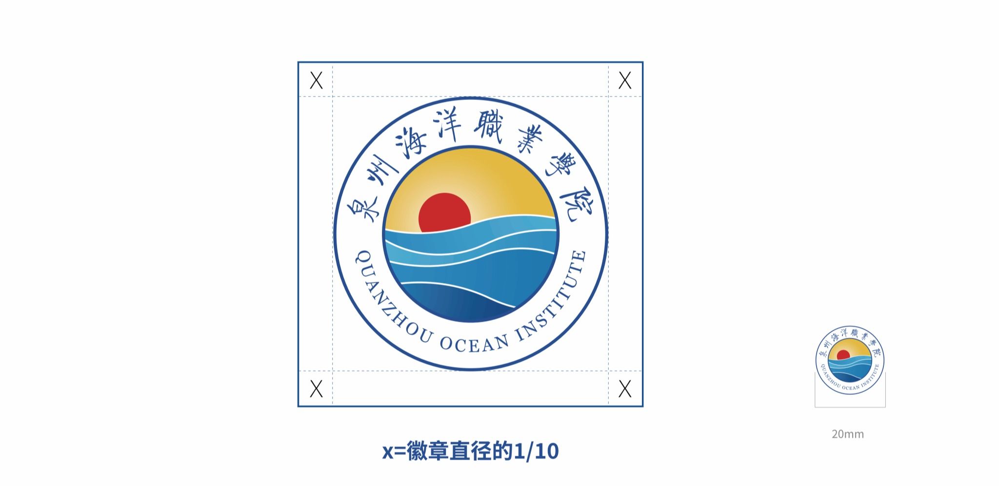 1、校徽的安全空间:任何图形文字等元素不可浸入此外边框。