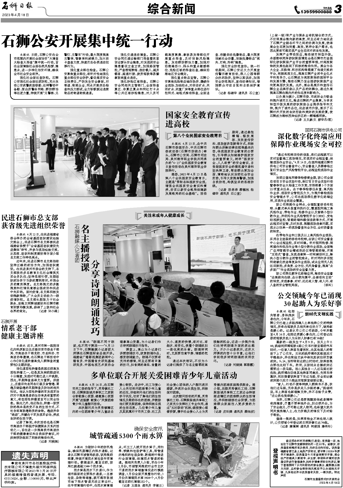 由中共石狮市委国安办、中共石狮市委政法委(石狮市防线办)牵头,石狮市公安局、石狮市司法局、泉州海洋职业学院共同承办的“4·15”全民国家安全教育日宣传活动在泉州海洋职业学院举行。
