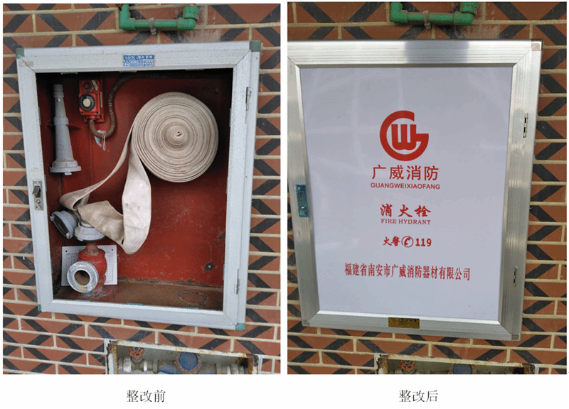 在前期排查消防安全隐患问题时,发现我校校舍消火栓面板损坏,灭火器部分过期及瓶内气压不够,现已全部完成整改。
