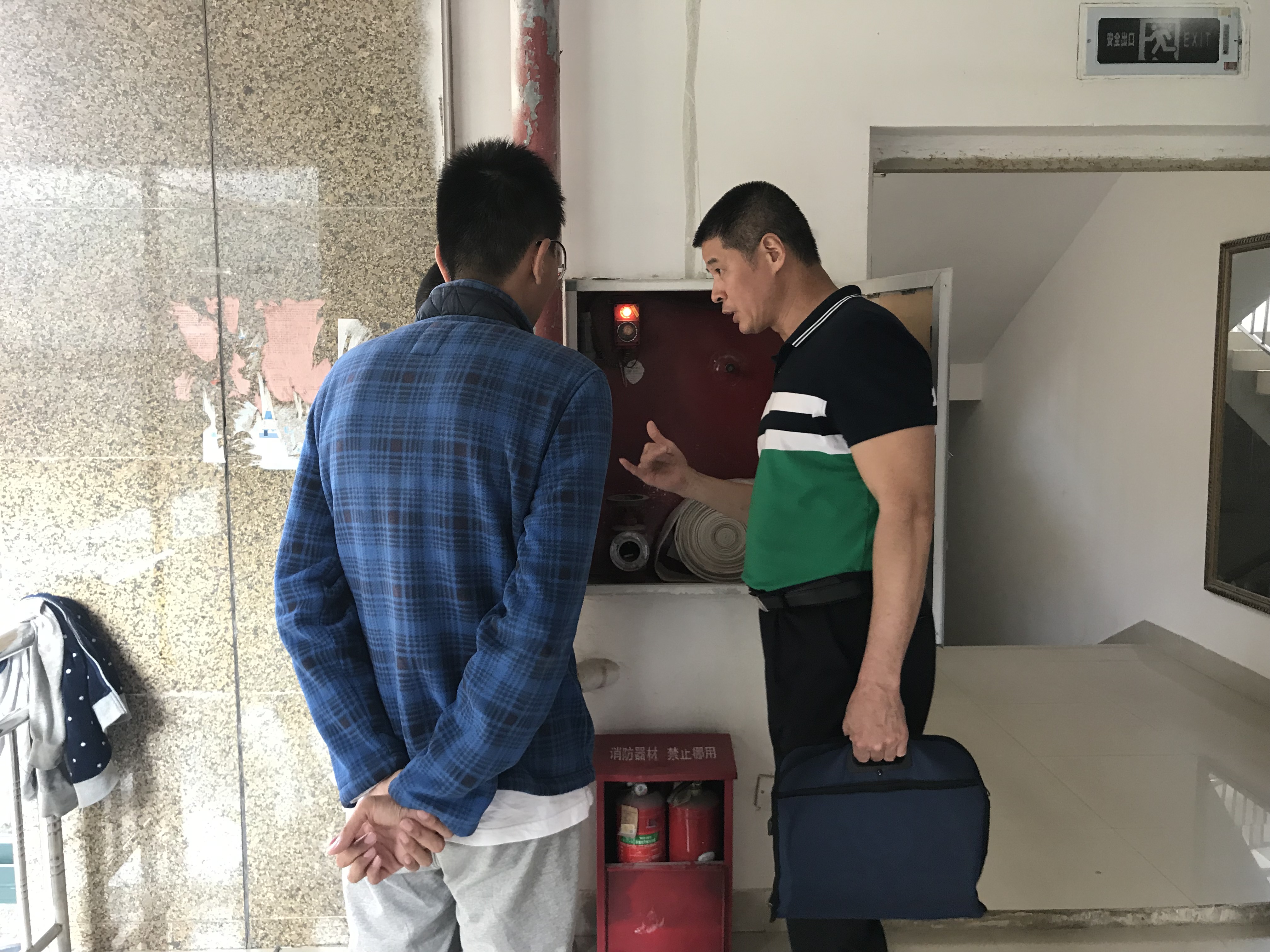 21日下午,泉州市教育局思政科主任科员陈建发莅临我校考察指导,先后对我校消防档案、指挥中心、学生宿舍及消防设备进行了全面细致的检查。对我校的消防现状表示认可和赞赏,并就当前存在的不足给出了阶段性的指导意见。