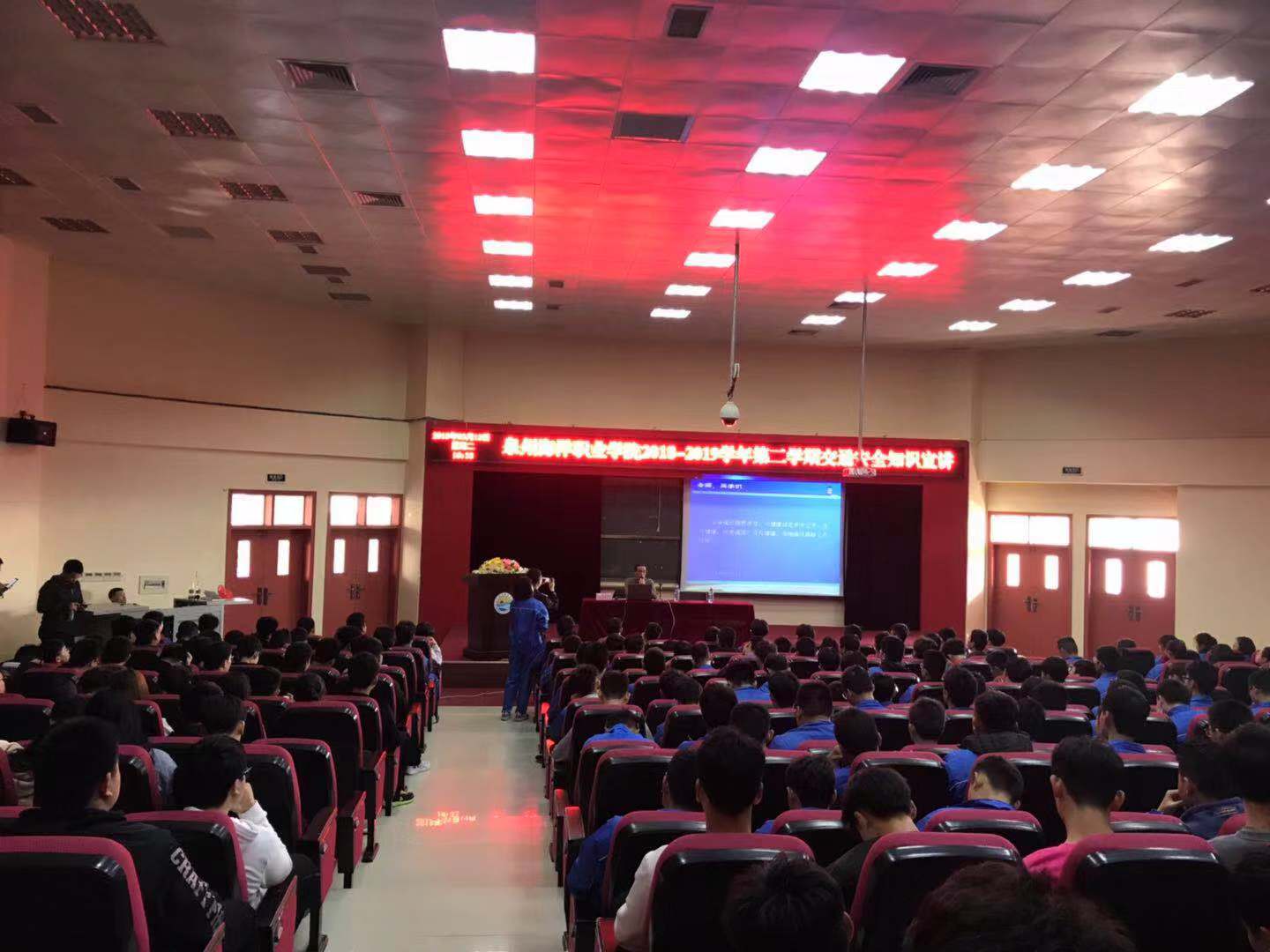 此次讲座特邀市交警大队原交管股股长蔡科日先生担任讲师。蔡讲师通过多年的从业经验,利用我市相关交通事故的多媒体资料,翔实深刻地将交通事故的危险展示在全体师生面前。让所有听众都清晰地认识到,交通事故离我们很近,往往刹那间的思想松动便导致家庭事故的发生。