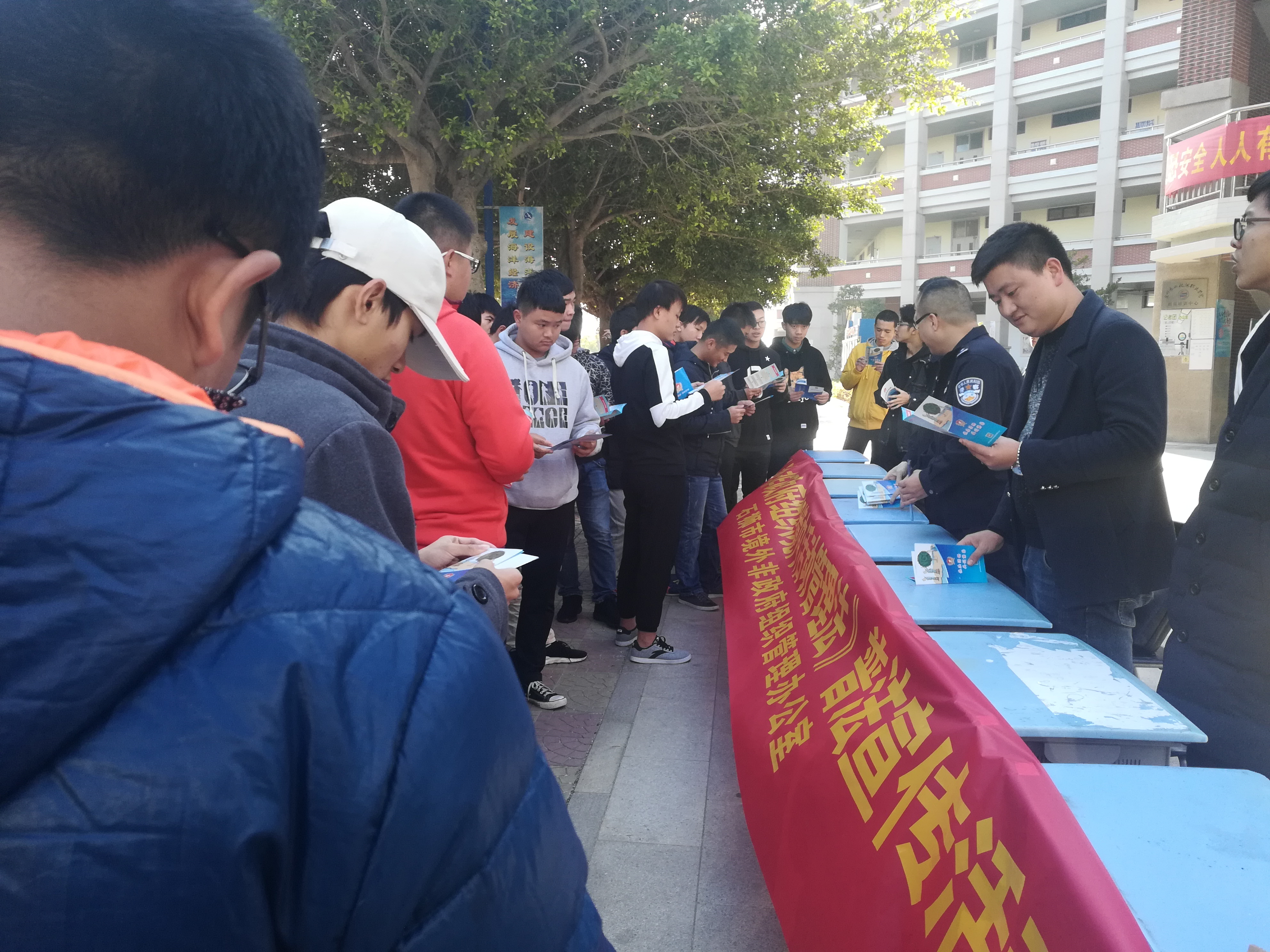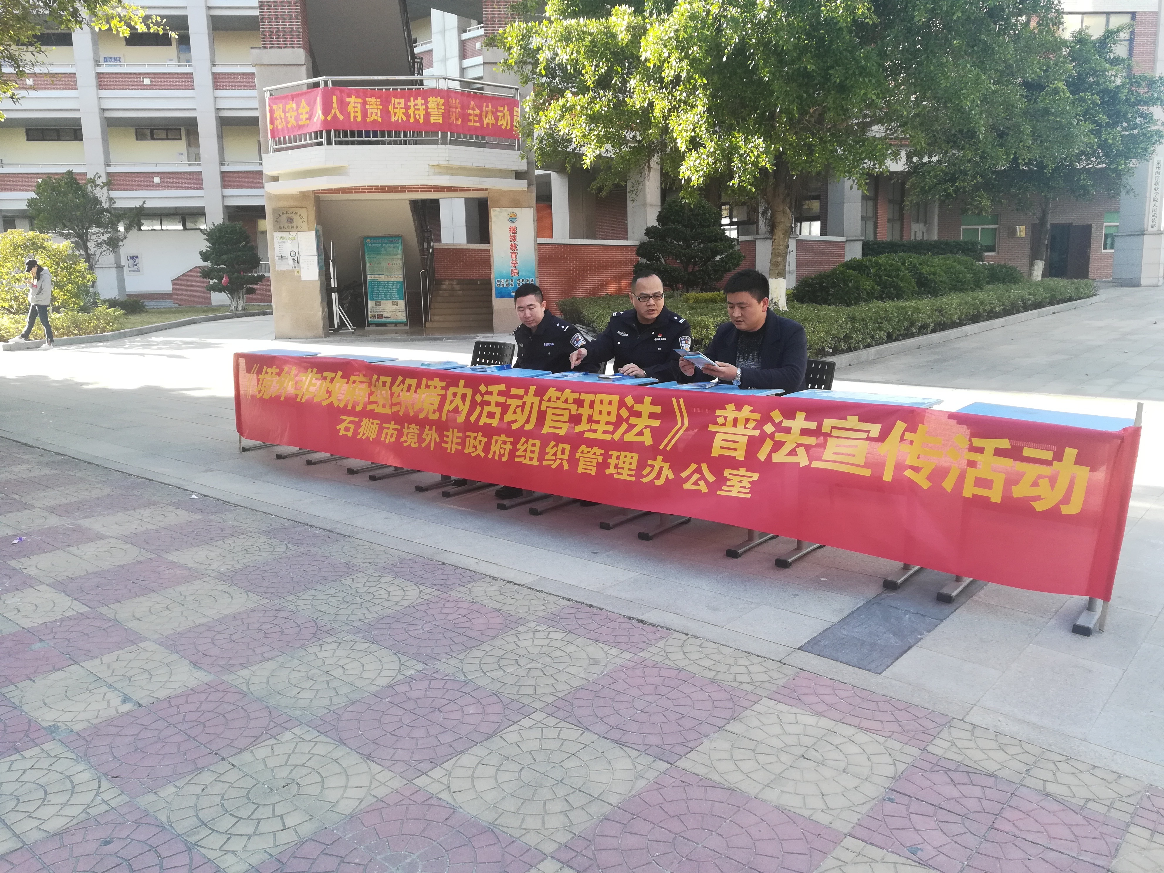 活动中通过派发宣传小册子、现场讲解等方式向在校老师、大学生对《管理法》及公安机关依法开展登记备案工作等情况进行了宣传。公安人员给同学们讲解了何为境外非政府组织、境外非政府组织在境内可开展活动的领域以及开展活动的途径等,并且详细地解答了同学们提出的相关问题,提高了同学们对境外非政府组织的认识。