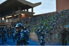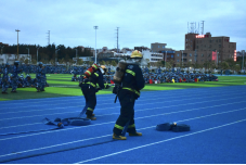 然而“险情”并未结束——正当师生在操场整队清点人数时,模拟“火情”突然向操场边缘蔓延。现场指挥员立即下达二次疏散指令,同学们沉着应对,再次规范做好防护动作,快速转移至更安全的开阔地带,展现出良好的应急素养。
