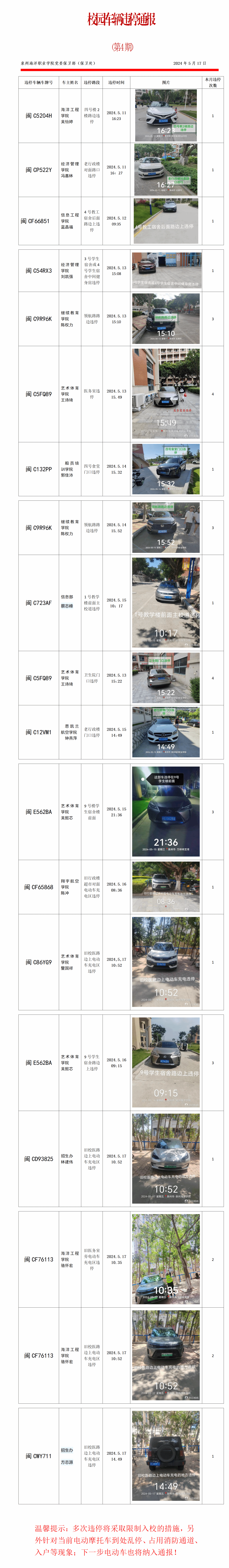 校园车辆违停通报(第4期)
