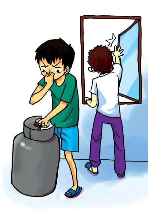 一定要购买带熄火保护装置的灶具,并规范安装。一旦发现灶具、钢瓶及连接部位出现液化气泄漏(有异味),首先要做到,不开关任何电器,不动用明火。在确保安全的情况下关闭钢瓶阀门,打开门窗通风,到安全的地方电话联系救援人员。