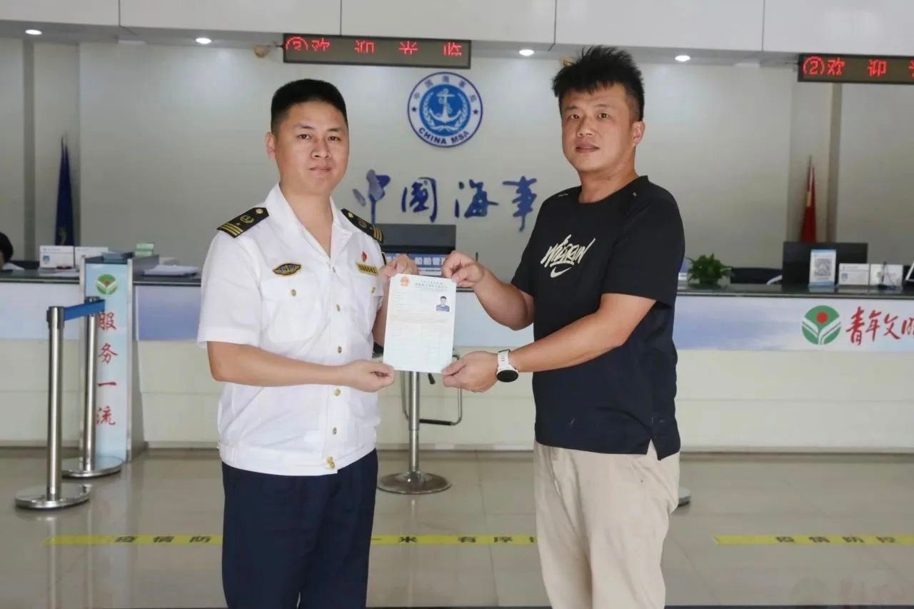 10月17日,泉州海事局签发首本台湾船员船员培训合格证,并向台湾船员黄先生发放船员证书。