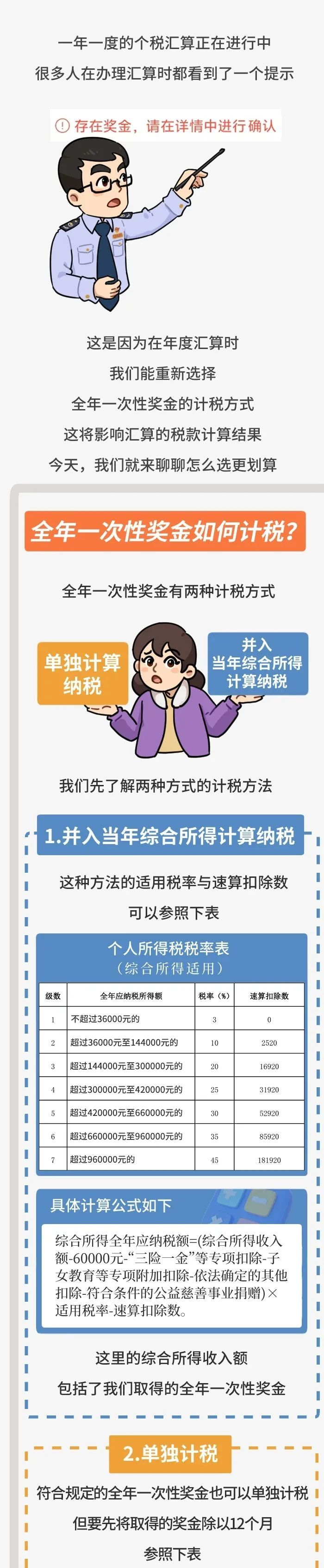 个税年度汇算,全年一次性奖金咋计税更划算?