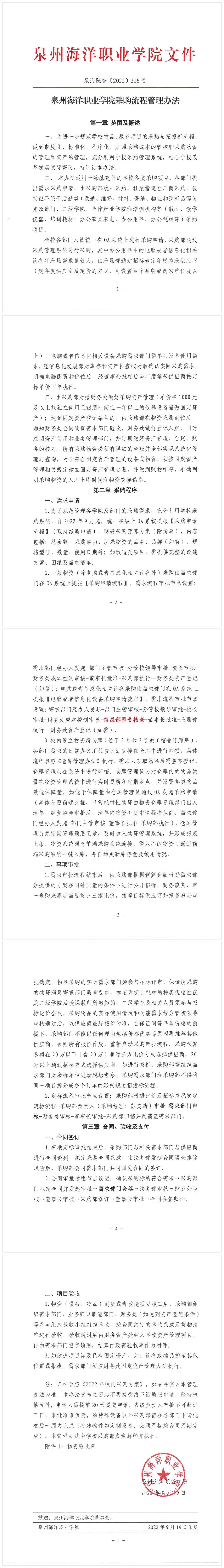 泉州海洋职业学院 采购流程管理办法