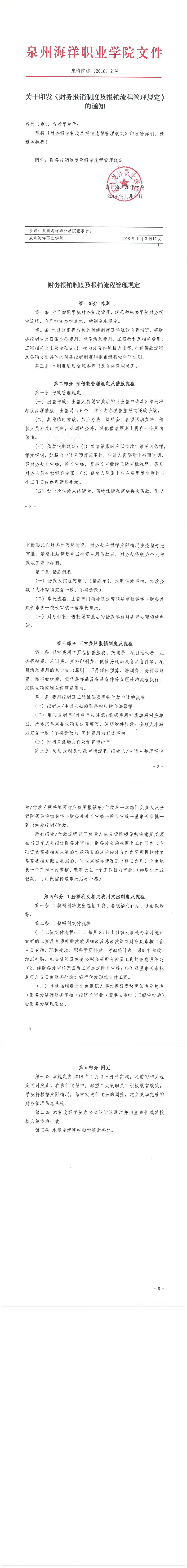 泉州海洋职业学院《财务报销制度及报销流程管理规定》