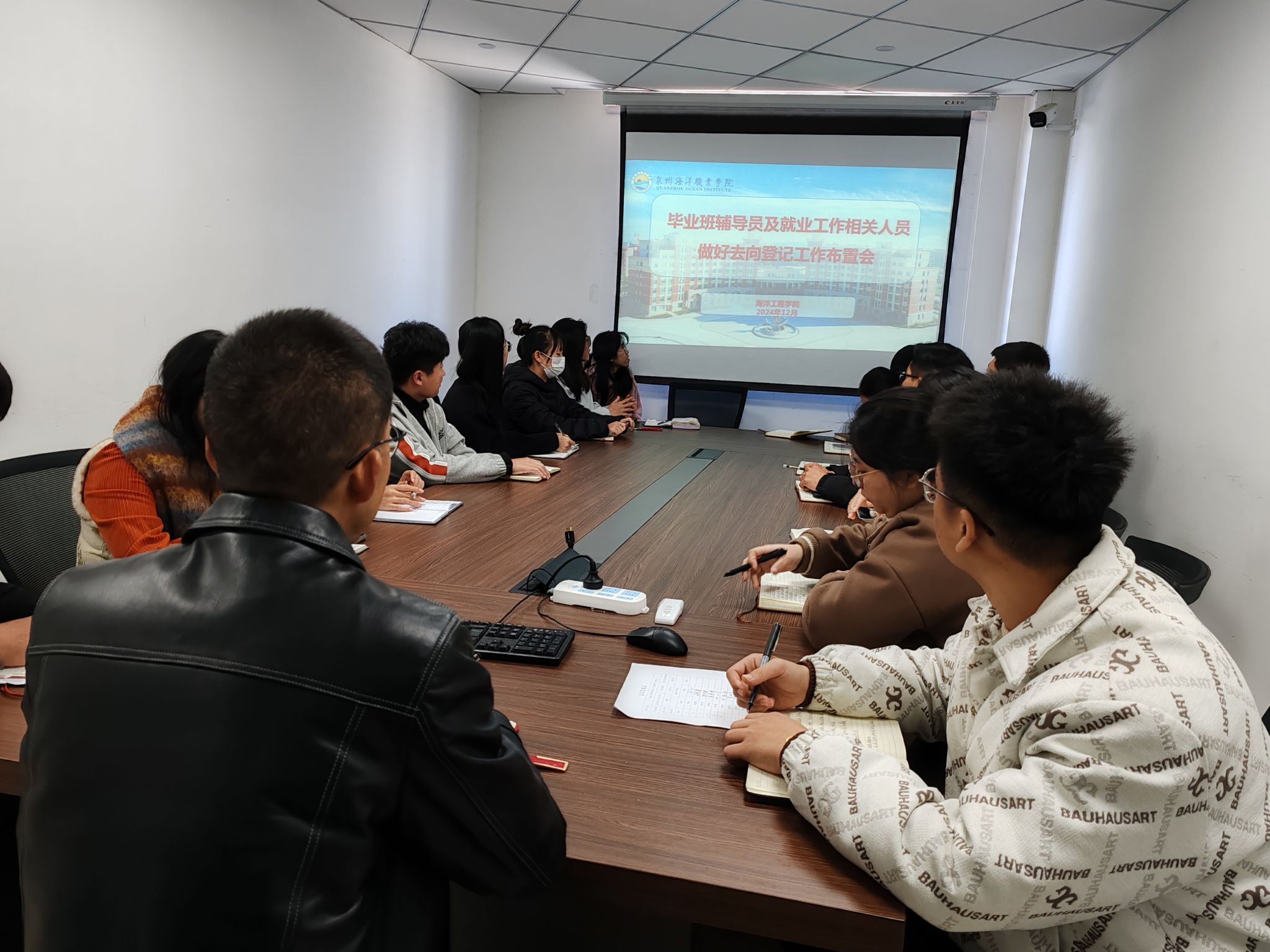 12月10日,航海交通学院就业工作小组召开会议,重点讨论 2025 届毕业生就业指标要求及推进措施,学院领导、全院辅导员及就业工作相关人员参加会议。
