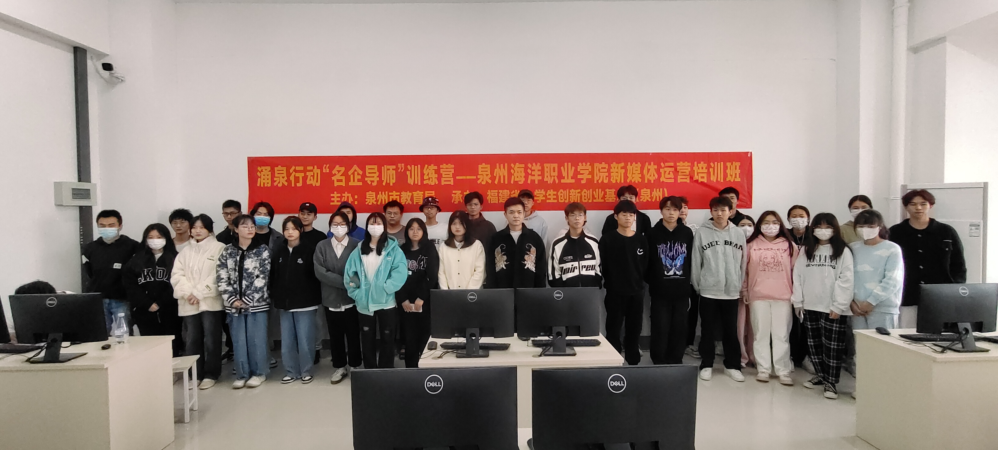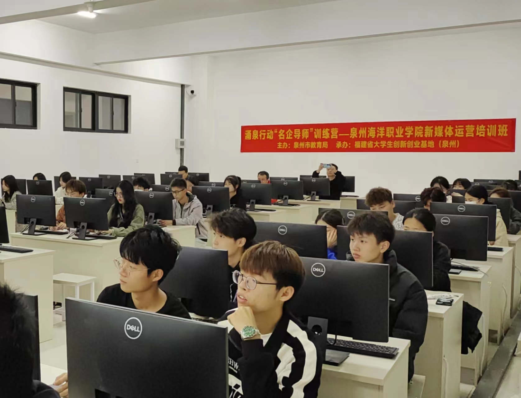 2022年12月9日-10日,由泉州市教育局主办、福建省大学生创新创业基地(泉州)承办举办为期一天半的涌泉行动“名企导师”训练营——新媒体运营培训班在我校教学实训楼1313正式开班,我校对外合作部与经济管理学院积极参与协办,学员主要由电子商务专业学生代表参加,此次培训主讲人是泉州光庭电子商务有限公司总经理潘春名。