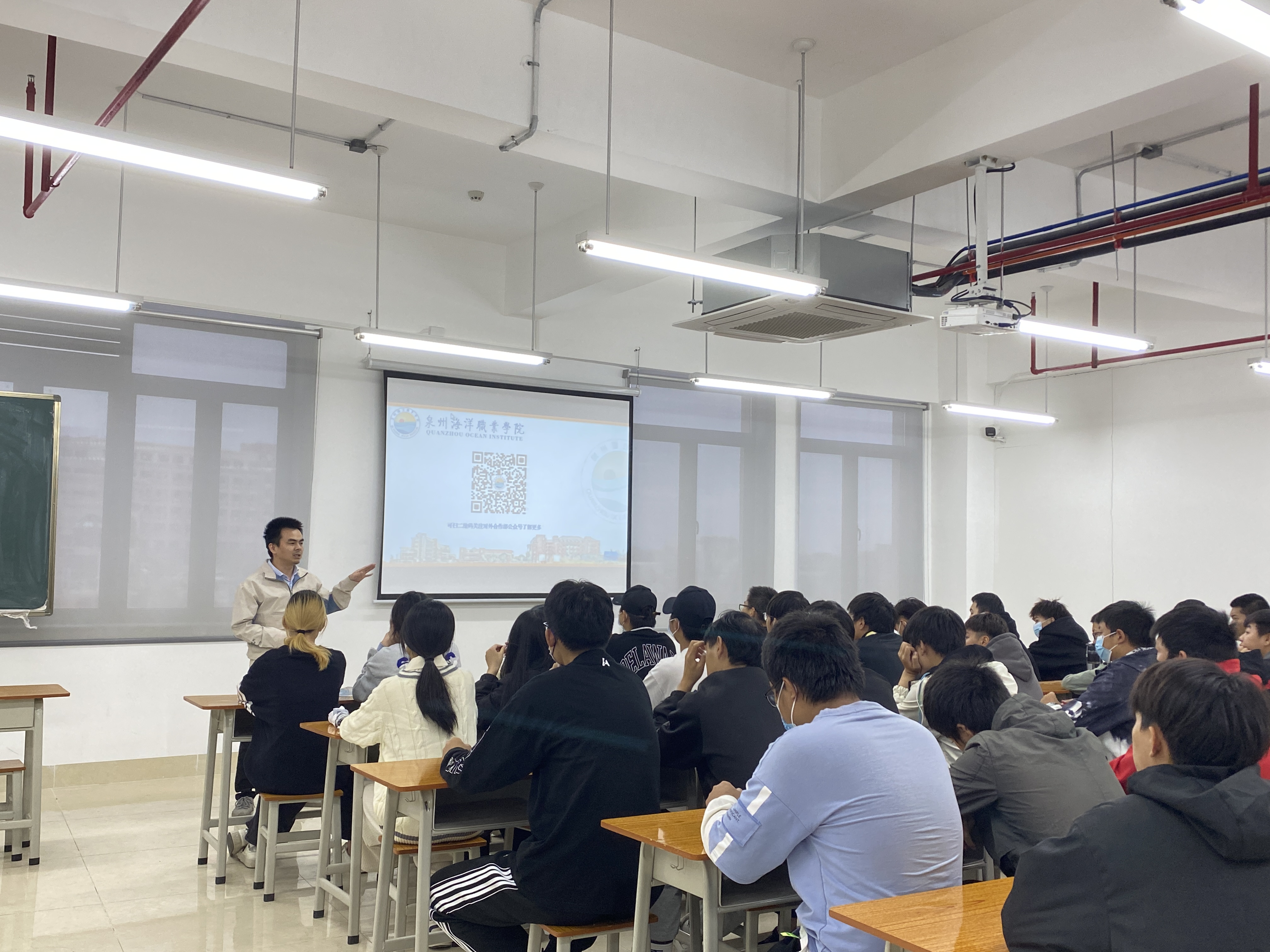 深度学习是目前人工智能领域的热门学科,其中数据标注是深度学习应用时的核心任务。为了开阔学生的视野,提高学生对于人工智能的认知水平和理解水平,2022年11月8日,泉州海洋职业学院信息工程学院同对外合作部开展了“创业培训巡演—数据标注工作室”专题培训,并邀请福建泉拓信息科技有限公司吴建棉总经理为同学们进行讲解。