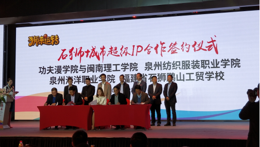 我院作为校企合作方学院吴广华校长、艺体系艺术设计专业王雪茹老师、创新创业指导郑天明老师及18级艺术设计学生代表受邀参加本次发布会。发布会上,石狮市正式发布城市超级IP计划,推出代表石狮狮文化印记的城市动漫形象,正式启动制作以狮文化为核心的《狮来运转》动画片,同步发布石狮城市超级IP共享模式,最后学院吴校长出席校企签约仪式。