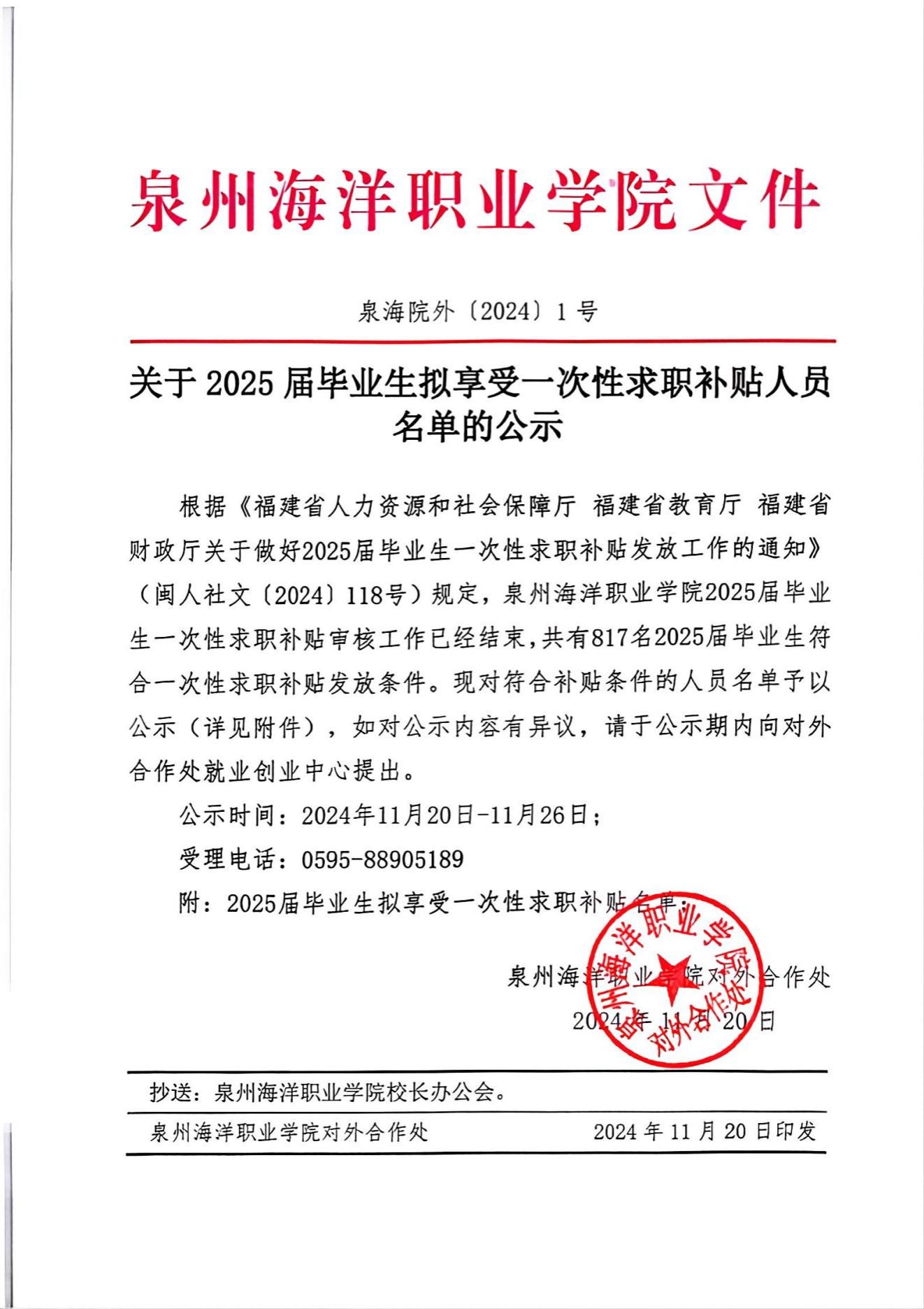 关于2025届毕业生拟享受一次性求职补贴人员名单的公示