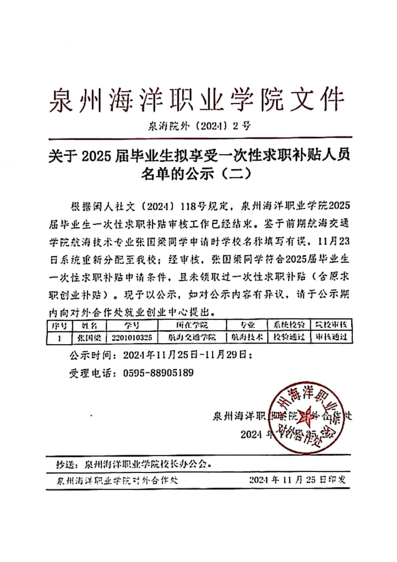 关于 2025 届毕业生拟享受一次性求职补贴人员名单的公示(二)