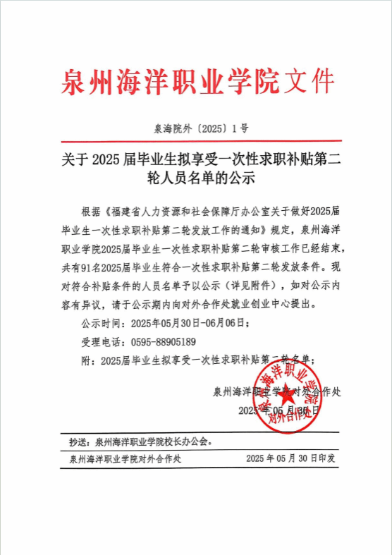 关于2025届毕业生拟享受一次性求职补贴第二轮人员名单的公示