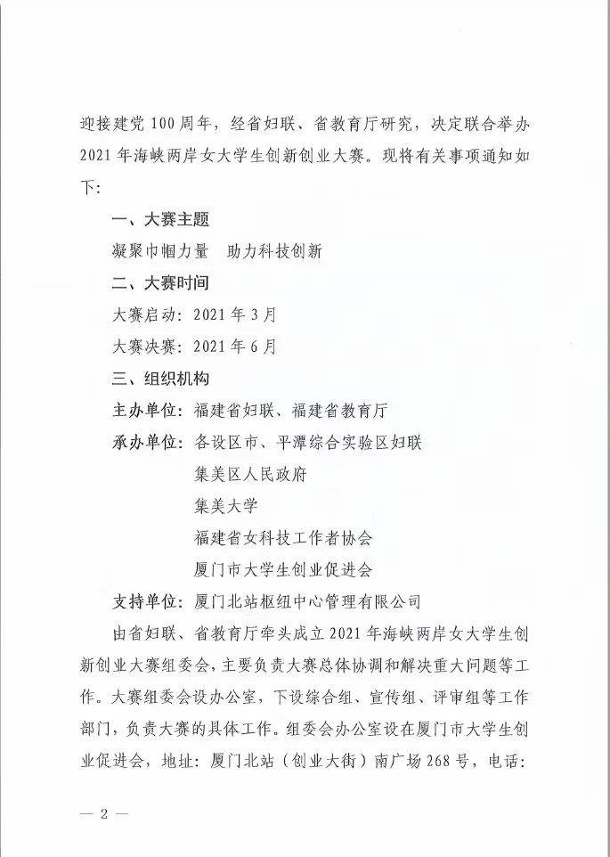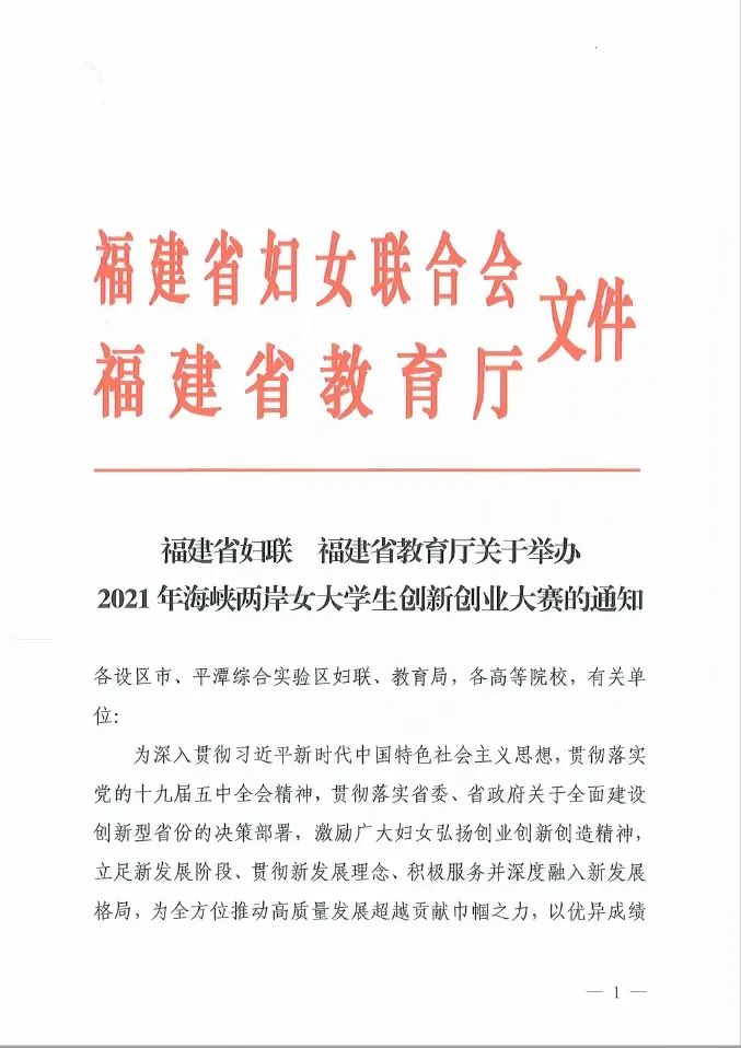 2021年海峡两岸女大学生创新创业大赛通知