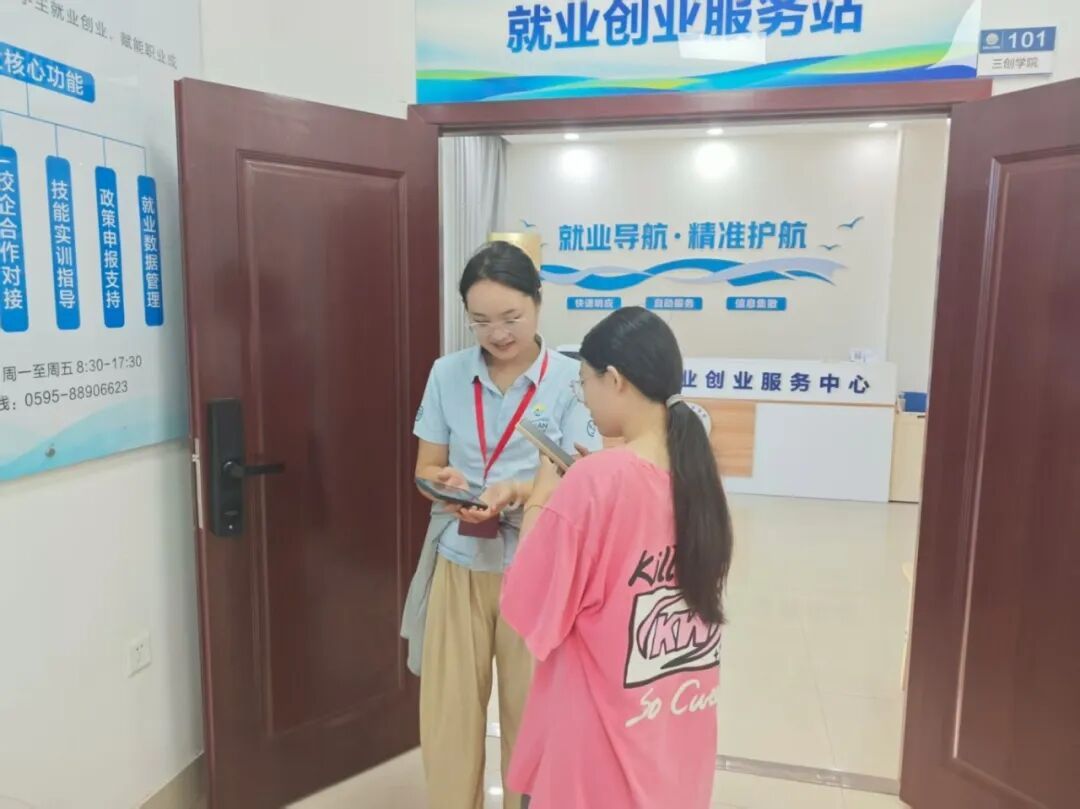 9月6日-7日,泉州海洋职业学院迎来了2025级新生报到日。为更好地服务新生及家长,回应广大学生关切的发展问题,根据分管副校长陈永鑫的工作指示,对外合作处(三创学院合署)分别在图书馆一楼设立“国际本科咨询处”和三创基地一楼就业创业服务站“就业创业政策咨询点”,由国际合作交流中心主任韩宏民老师和就业创业中心主任郑天明老师分别带队,为新生及家长提供面对面的答疑与服务。