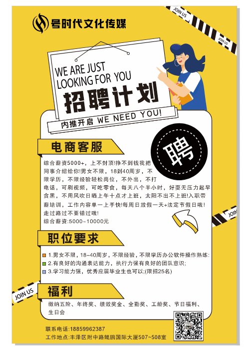 1.男女不限,18-40周岁,不限经验,不限学历办公软件操作熟练: