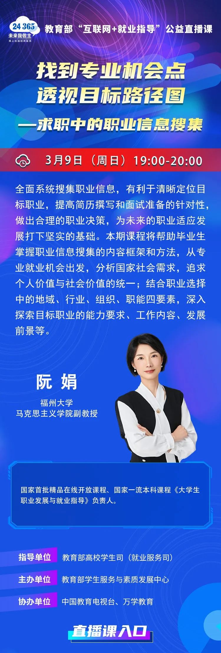 就业指导15:课程预告 | 教育部“互联网+就业指导”公益直播课:找到专业机会点,透视目标路径图——求职中的职业信息搜集