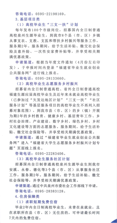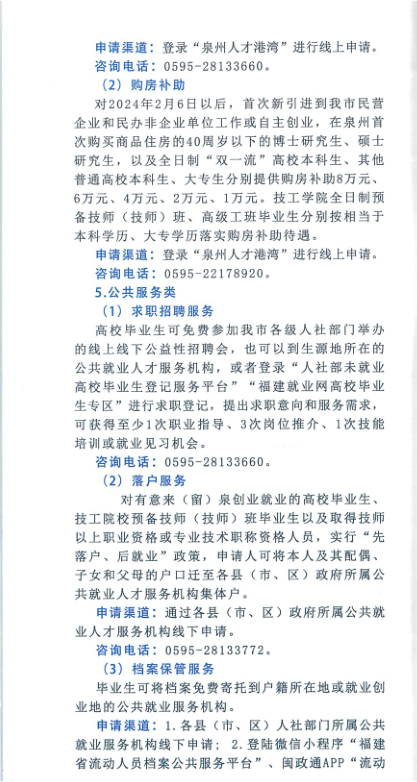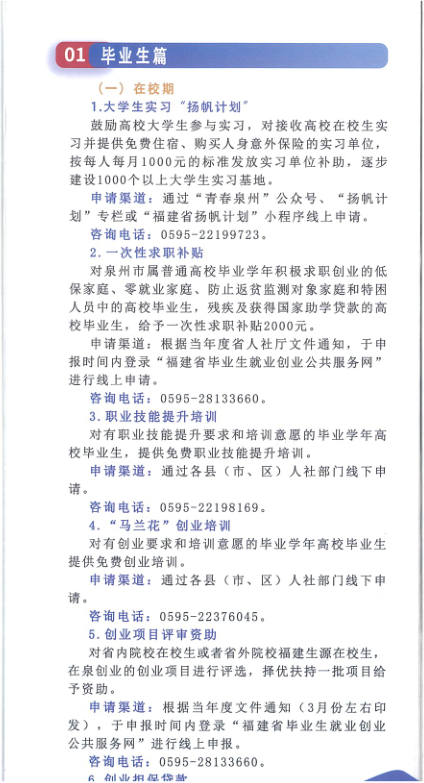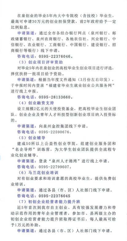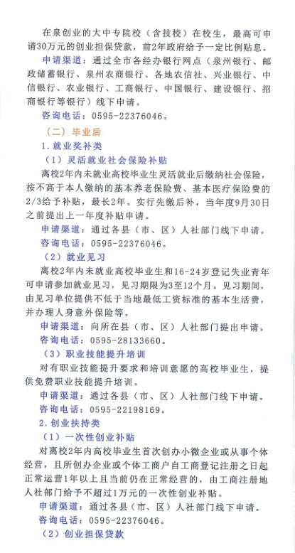 泉州市高校毕业生就业创业政策