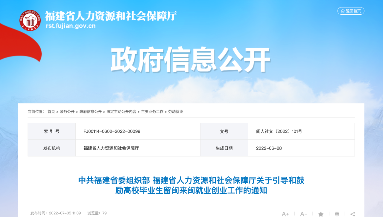 福建省人力资源和社会保障厅发布