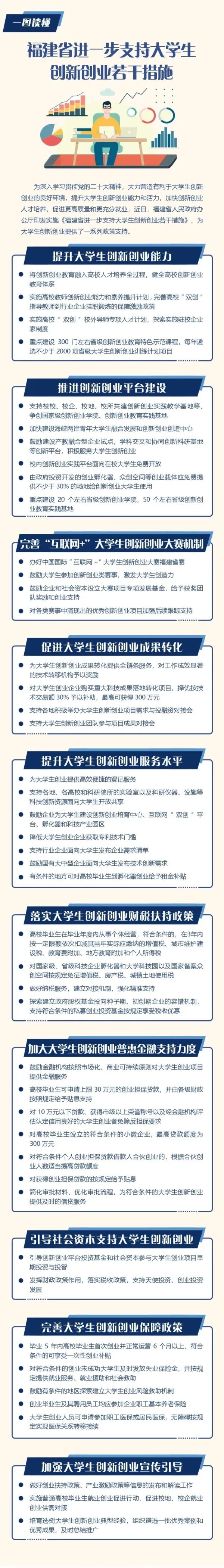 大学生创业政策 |《福建省进一步支持大学生创新创业若干措施》