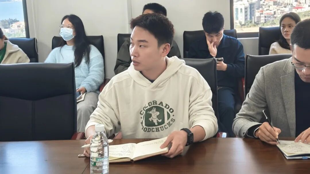 校企合作中心主任郑勇辉针对近期校企签约工作进展、现存问题及后续计划进行专项汇报,详细梳理了当前签约推进情况,明确了下一步工作重点。期间,蒋滨滨结合会议内容,聚焦就业创业与校企合作协同推进、细节落实等方面补充重要意见,进一步细化工作要求。